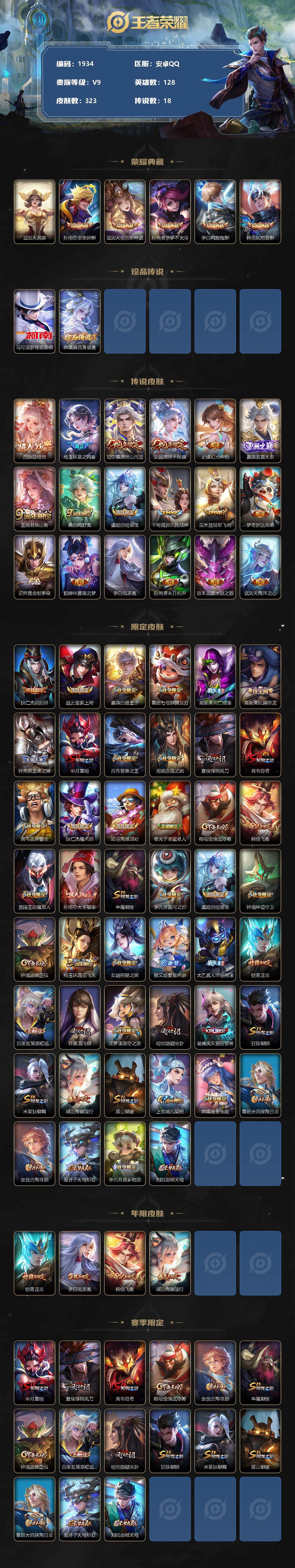 [12552378]【商品标题】:安卓Q-V9-永恒钻石I段位-128英雄-323皮肤-5典藏-0珍品无双-0无双-2珍品传说-18传说-81史诗