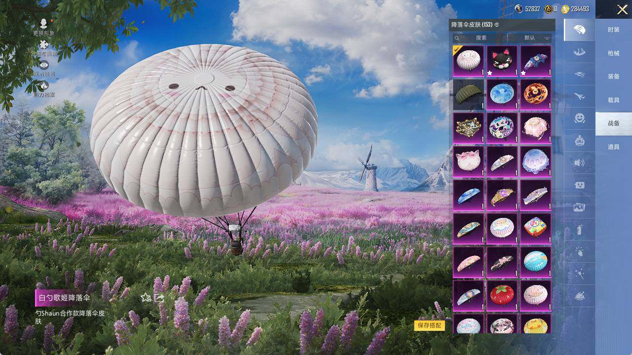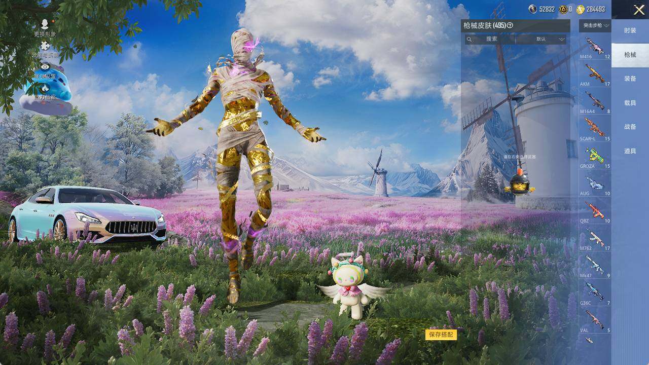 AKM-甜心宝贝,AKM-炫紫旋律,SCAR-L-童趣迷兔,M416-心之恋语,M416-暖熊萌萌,M416-至情至圣,M416-超新星,GROZA-香水柠檬,AUG-南国舞曲,AUG-星梦奇缘,M762-甜心娃娃,UMP45-雪国精灵,Vector-环太平洋,Vector-灵感创作师,汤姆逊-怪笑疯兔,AKS-74U-信仰神谕,P90-甜蜜草莓,P90-沙丘之主,Kar98K-伏魔团,Kar98K-巳巳如意,AWM-橘柚倾心,Mk14-盛世惊鸿,SLR-暗夜玫瑰,AMR-炫光之旅,S12K-海渊国主,M249-彩虹甜喵,DP-28-圣堂之誓,MG3-梦幻舞会,平底锅-林间仙鹿,烟雾弹-猫咪绅士,破片手榴弹-粉粉猫爪