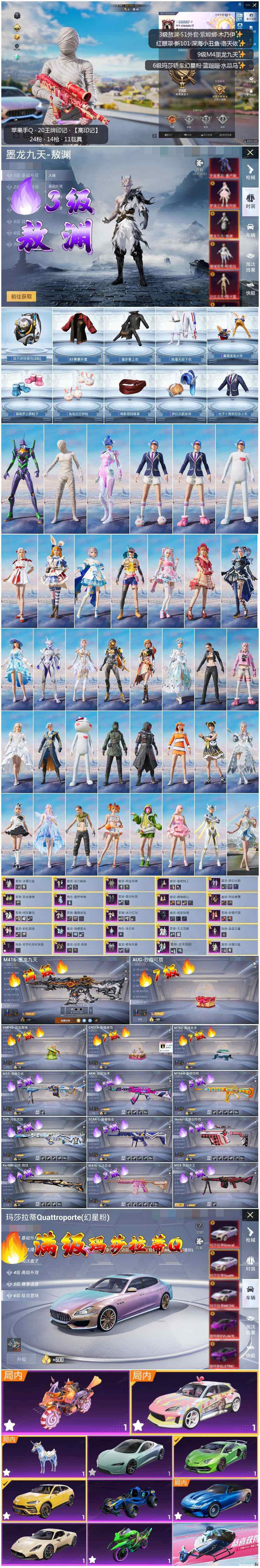 [12553389]素材身法号/老木乃伊/玛莎拉蒂Quattroporte(幻星粉)(六级)/M416-墨龙九天(九级)【特价急出/详情看图】:苹果 手Q-1神装-24粉装-14特效枪-12载具-9粉色飞行器-15.5w热力值-20王牌印记-307套装-380枪皮【红色载具】:玛莎拉蒂Quattroporte(幻星粉)(六级)【红色神装等级】:墨龙九天-敖渊(三级)【热门品类】:粉装-梦幻火箭,粉装-童趣迷兔,套装-浪漫天命,套装-冥河战士,套装-深海小丑鱼,套装-小丑鱼,套装-奇异狩猎者,套装-暗夜行者,套装-动感兔斯基人偶服,套装-SS1特训,套装-龟仙人,套装-暗影哥特,套装-浪漫波比,套装-粉红小猪,小恶魔头饰,熔岩游骑兵面罩,熔岩游骑兵连帽夹克【粉色载具】:特斯拉Roadster(水滴蓝),兰博基尼Aventador SVJ(翡翠绿),兰博基尼URUS(明艳黄),玛莎拉蒂MC20(星石白),玛莎拉蒂Quattroporte(幻星粉),幽澜尊爵(静谧蓝),合金龙骨(蓝),羁绊之心,双人摩托-双刃魅影(绿),鬼马风驰,空客H135-蔚蓝之翼,星梦玉骢【粉色套装】:粉装-梦幻火箭,粉装-绚金战神,粉装-冰霜白皇,粉装-童趣迷兔,粉装-烈焰拳霸,粉装-蜜桃特工,粉装-暗夜玫瑰,角色-洛天依,角色-初号机款机体服,粉装-天之羽翼,粉装-恐龙拽拽,粉装-橘柚倾心,粉装-紫电风暴,粉装-妙趣可丽,粉装-彩虹甜喵,粉装-冰川幽秘,粉装-冰川红玫,粉装-青空秋雨,粉装-海螺星光,粉装-纯珍童话,角色-圣堂之誓,套装-创世·救赎,角色-星梦奇缘,粉装-金丰海韵【粉色枪皮等级】:AKM-炫紫旋律(五级),M16A4-垂柳戏鸭(五级),SCAR-L-青春物语(五级),M416-心之恋语(三级),M416-墨龙九天(九级),GROZA-焦糖拿铁(七级),AUG-妙趣可丽(七级),M762-激战未来(七级),UMP45-恐龙拽拽(七级),Vector-灵感创作师(四级),Kar98K-创世·救赎(四级),SVD-月影灵韵(五级),MG3-洛神天依(五级),MG3-炙焰牛王(一级)【粉色飞行器】:春暖花开飞行器,激战未来飞行器,星之彼岸飞行器,天之羽翼飞行器,庄周梦蝶飞行器,千面幻镜飞行器,沙丘之主天马,龙翔九天飞行器