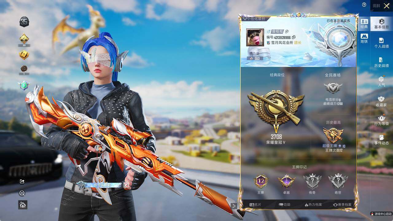 - PX_2009629-实名: 可修改 时装数: 181 载具数: 2 枪械数: 226 战备数: 181 热门装扮: 深海曼妙,鹰眼刺客,甜蜜誓约,都市猎人,极致幻想,新星烈龙,童趣迷兔,馨动时刻,仓鼠灰灰,激萌罗小黑,胖达圆圆,青空秋雨,千金淑猫,女娲灵识,桃粉嫣然,凤凰座 一辉 载具: 阿斯顿·马丁DBS(红),仰望U9(赤霞丹朱) 稀有枪皮: M762甜蜜誓约,M416心之恋语,M249彩虹
