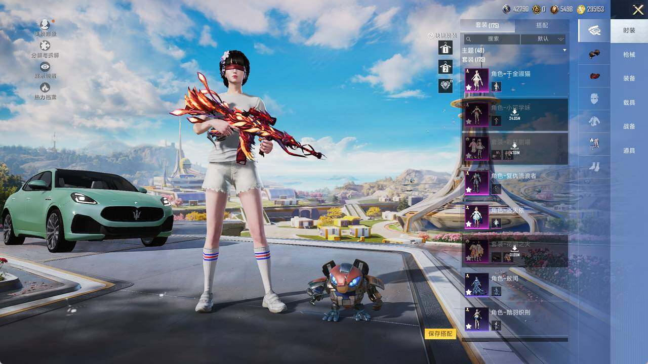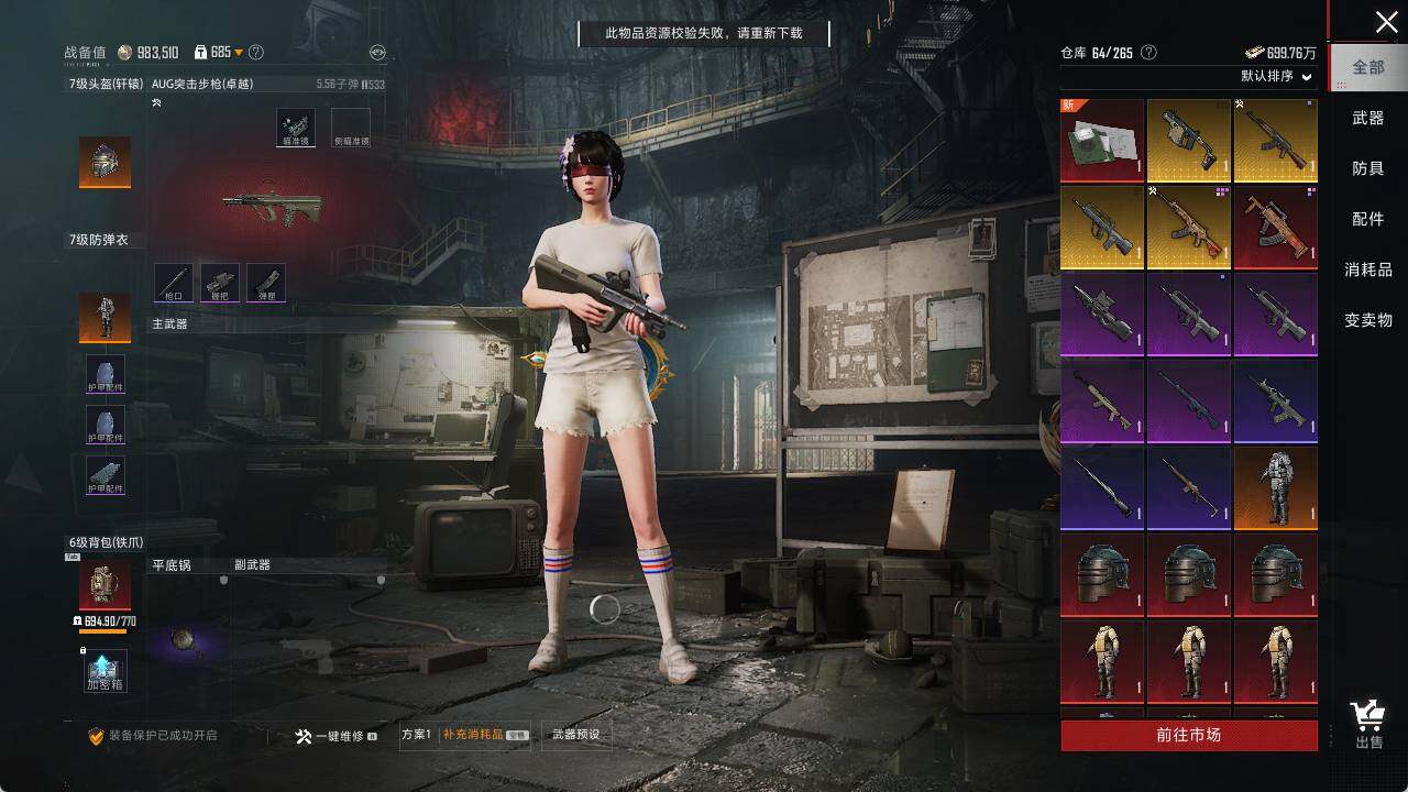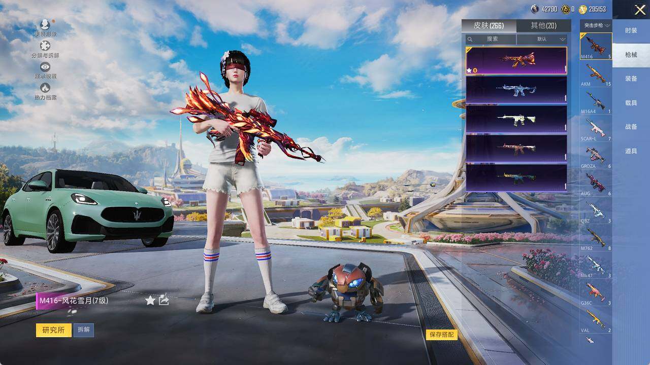 AKM-甜心宝贝,M416-风花雪月,GROZA-镜光银凌,AUG-星之彼岸,AUG-暖羊咩咩,Vector-环太平洋,Kar98K-巳巳如意,DP-28-暗夜鎏金,MG3-洛神天依,烟雾弹-丁香清露,破片手榴弹-热量炸弹