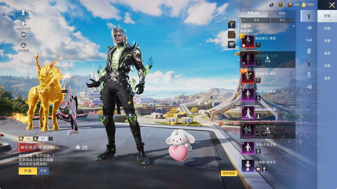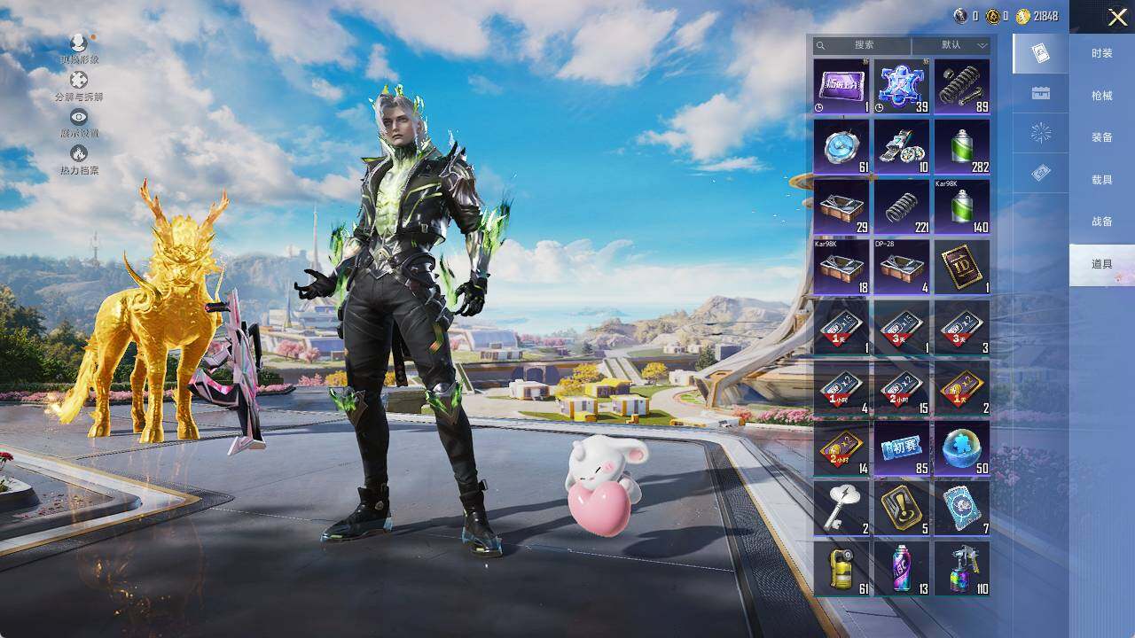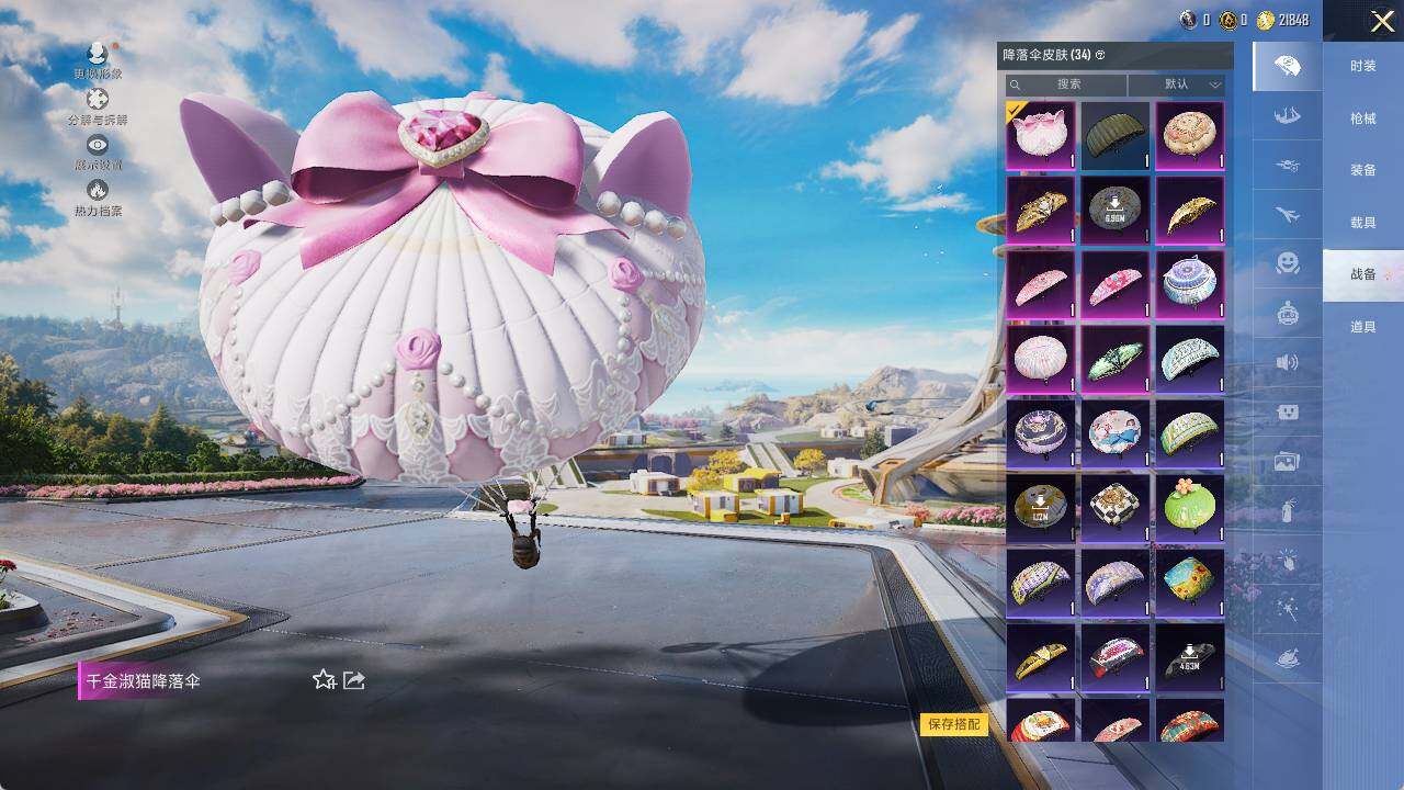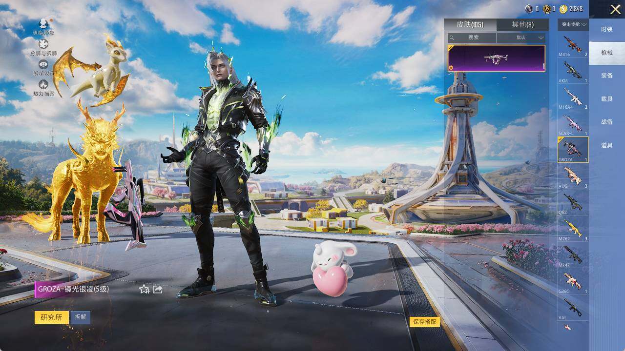 AKM-幽焰骑士,SCAR-L-时空协奏,M416-风花雪月,GROZA-镜光银凌,AUG-暖羊咩咩,Kar98K-巳巳如意,Kar98K-圣域龙灵,Mk14-樱桃泡泡,M200-伏羲圣卦,DP-28-千金淑猫,破片手榴弹-热量炸弹