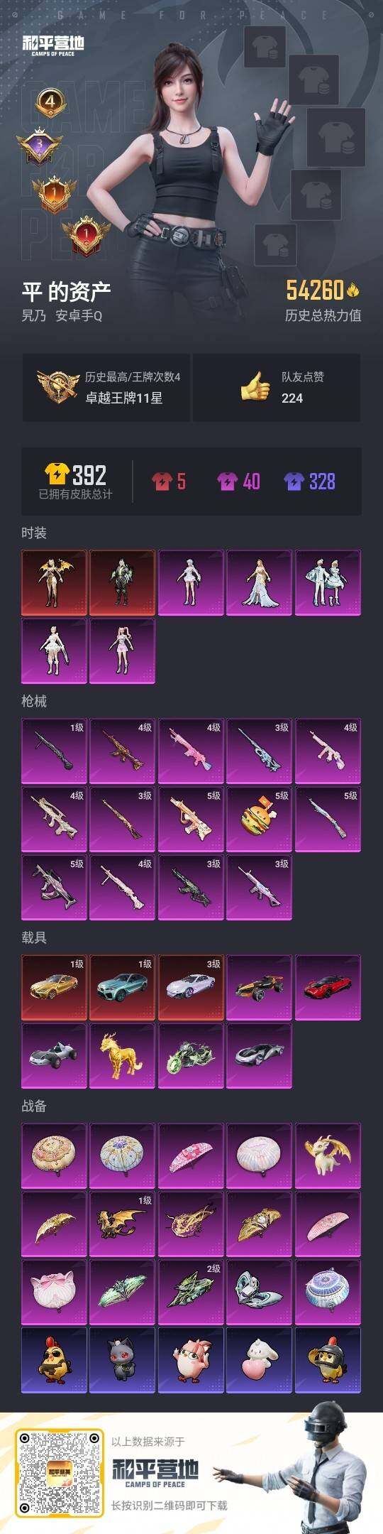 - PX_2109470-M1008 安卓Q-15518热力值 3王牌印记 历史超级王牌4星 35套装 56枪皮 【1粉装】 冷漠罗丽 【1特效枪】 Kar98K-巳巳如意 (5级) 营地ID:967511843