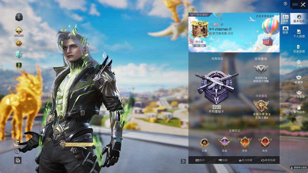 - [11658354]V7 1典藏 4传说 123英雄 260皮肤 可修改实名 荣耀水晶:鸣剑·曳影 传说皮:幻光神枪,黄金射手座,一念神魔 珍宝阁皮:优雅恋人,玩趣恶龙 限定皮:逐霄战戟,鸣野蒿,至尊宝,神威(电光马子),冰锋战神,梁祝,御风骁将(吕布年限),逐梦之星,李小龙,大圣娶亲 史诗皮:星界战将,龙之律动,蒙犽顽岩魄,化蝶舞,紫霞仙子,白龙吟,黄金分割率,特工魅影,江河有灵,高渐离燃音魔法,百解令(蒙犽),蒙恬荣光圣徽,无限星赏官,末日机甲-吕布,猫狗日记-孙策,猫狗日记-大乔,节奏热浪,摇滚巨星,水果甜心,绅士熊喵,天才门将,星夜王子,心灵骇客,德古拉伯爵,暗隐猎兽者,幽灵船长,鬼剑武藏,心灵战警,地狱岩魂,纤云弄巧,繁星吟游(呼啦呼啦),拒霜思,乘风破浪,逐浪之夏,水晶猎龙者,曙光守护者,金属风暴,原初追逐者,圣诞狂欢,圣诞恋歌,鹰眼统帅,魅力维加斯,未来纪元-赵云
