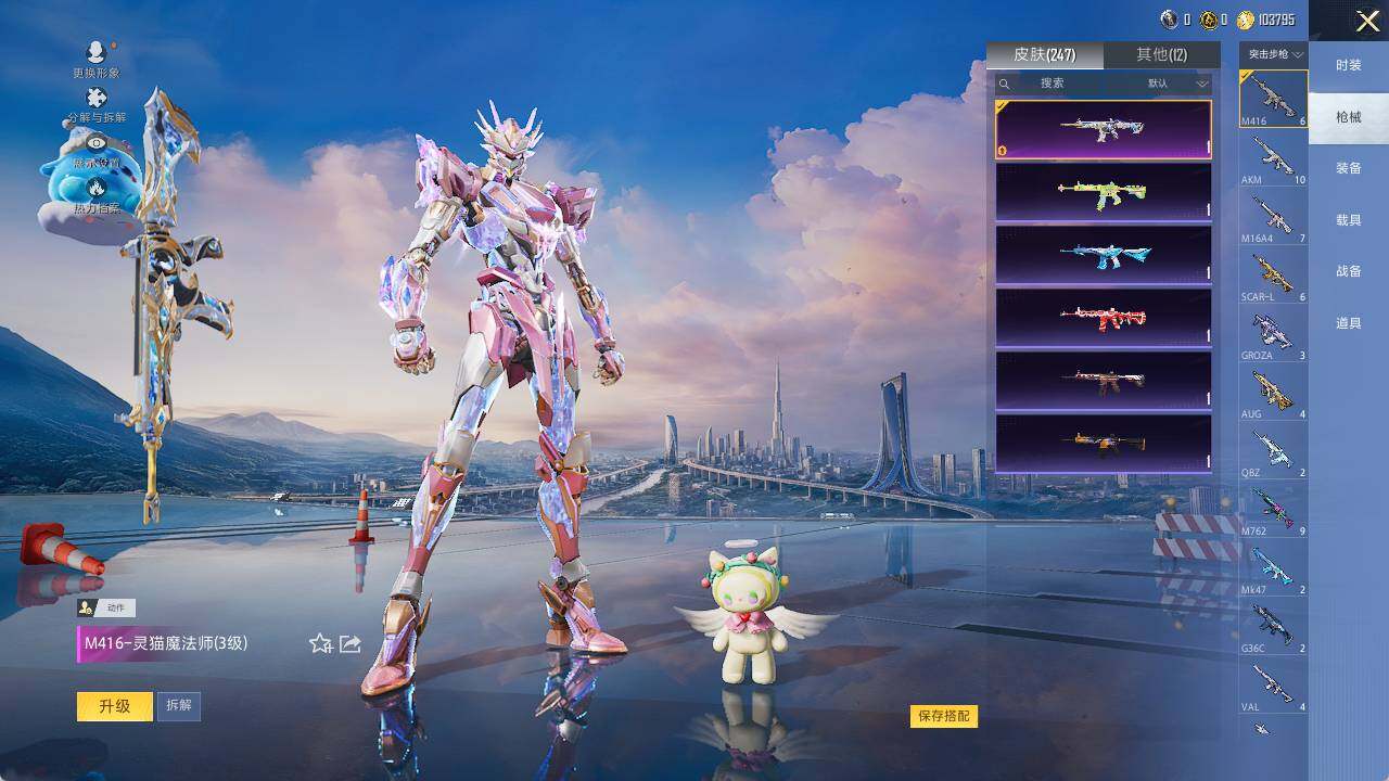 SCAR-L-金蛇镇世,GROZA-圣辉之星,M762-鬼刀,Kar98K-巳巳如意,Kar98K-圣域龙灵,Mk14-盛世惊鸿,PKM-江南烟雨
