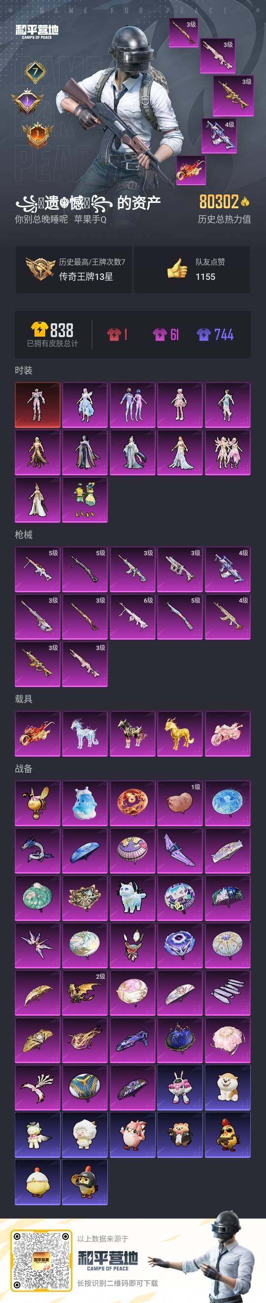 - [13865687]苹果Q-V8-最强王者段位-125英雄-305皮肤-1典藏-0珍品无双-0无双-2珍品传说-14传说-91史诗 【荣耀典藏】:韩信弑枪猎影 【珍品传说】:马可波罗怪盗基德,鲁班七号江户川柯南 【传说皮肤】:司空震愿照山河定,澜愿照九州拓,云缨幻光神枪,裴擒虎祥瑞亨通,桑启鸣野蒿,赵云乘龙铭钟鼎,赵云淬星耀世,镜炽阳神光,虞姬启明星使,干将莫邪久胜战神,百里玄策白虎志,后羿黄金射手座,李白凤求凰,孙悟空地狱火 【限定皮肤】:姜子牙天穹之誓,杨戬破阵退雄兵,狄仁杰阴阳师,赵云皇家上将,嬴政白昼王子,孙尚香蔷薇恋人,鲁班七号狮舞东方,庄周高山流水,高渐离死亡摇滚,阿轲迷踪丽影,芈月重明,吕布猎兽之王,元歌云间偶戏,夏侯惇朔风刀,甄姬游园惊梦,曹操烛龙,典韦穷奇,典韦蓝屏警告,马可波罗暗影游猎,狄仁杰魔术师,狄仁杰万华元夜,达摩沙漠行僧,项羽海滩派对,老夫子醍醐杖,程咬金演武夺筹,刘邦夺宝奇兵,兰陵王金庭之子,花木兰青春决赛季,亚瑟潮玩骑士王,孙悟空至尊宝,孙悟空大圣娶亲,牛魔御旌,李元芳银河之约,李元芳云中旅人,虞姬启明星使,钟馗神迹守卫,钟馗驱傩正仪,杨玉环遇见飞天,女娲朔望之晖,雅典娜黎明之约,蔡文姬繁星吟游,太乙真人华丽摇滚,鬼谷子原初探秘者,鬼谷子五谷丰年,苏烈千军破阵,百里玄策白虎志,百里玄策原初追逐者,弈星混沌棋,梦奇顽趣,沈梦溪星空之诺,沈梦溪大漠名商,明世隐疑决卦,裴擒虎李小龙,裴擒虎擒涛扼浪,狂铁御狮,米莱狄御霄,盾山御銮,猪八戒西部大镖客,猪八戒猪悟能,上官婉儿梁祝,鲁班大师探海日志,桑启海盐诗旅,艾琳女武神,张良古海寻踪,蒙犽百解令,蒙恬荣光圣徽,鬼谷子天穹祈灯,赵云乘龙铭钟鼎,刘邦剑破天穹,程咬金群星魔术团,刘备异域游侠,芈月浮光幕影,周瑜熔金海岸 【年限皮肤】:百里玄策白虎志,李白凤求凰,马超神威,赵云乘龙铭钟鼎 【赛季限定】:芈月重明,夏侯惇朔风刀,曹操烛龙,典韦穷奇,狄仁杰万华元夜,达摩沙漠行僧,老夫子醍醐杖,程咬金演武夺筹,兰陵王金庭之子,张良古海寻踪,牛魔御旌,李元芳云中旅人,钟馗驱傩正仪,雅典娜黎明之约,鬼谷子原初探秘者,苏烈千军破阵,百里玄策原初追逐者,弈星混沌棋,梦奇顽趣,沈梦溪大漠名商,明世隐疑决卦,裴擒虎擒涛扼浪,狂铁御狮,米莱狄御霄,盾山御銮,鲁班大师探海日志,桑启海盐诗旅,鬼谷子天穹祈灯,蒙恬荣光圣徽,刘邦剑破天穹,姜子牙