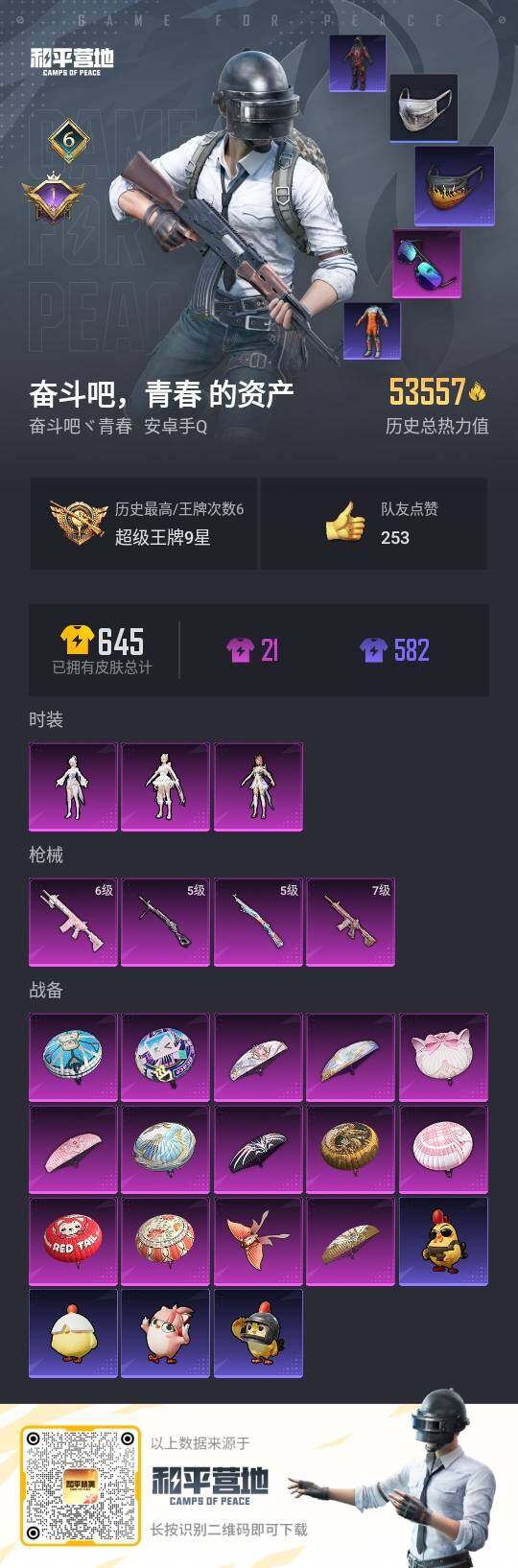 - PX_2110970--(可二次实名) 安卓Q-12106热力值 1王牌印记 历史卓越王牌6星 51套装 40枪皮 【2特效枪】 AKM-绿萝繁花 (5级) Kar98K-巳巳如意 (1级) 【4热门】 星河浪客 破蛋小黄鸡 极速红龙 S686-奇异狩猎者 【1背包】 甜心宝贝背包 营地ID:903763948