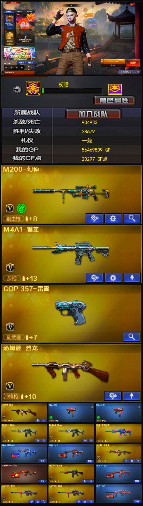 【热门武器】:M200-幻神,死亡之眼*2,M4A1-黑骑士,汤姆逊-烈龙*2,沙鹰-修罗*6