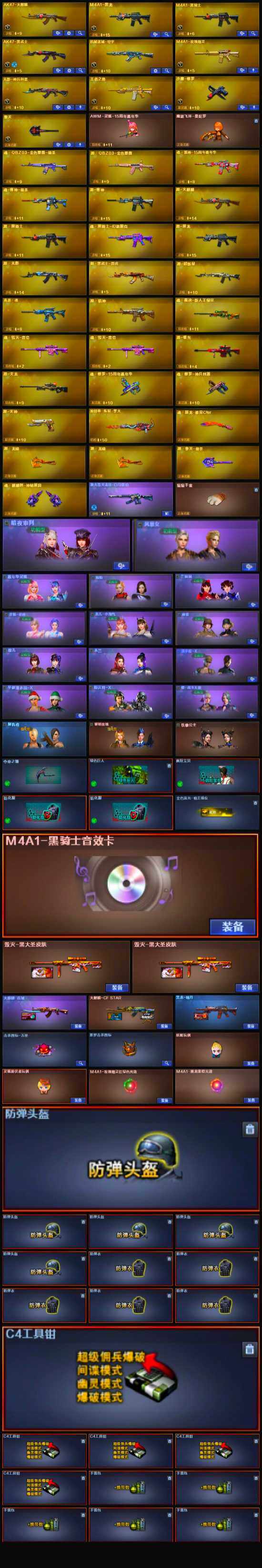 【英雄级武器】:无影-神兵利器,M4A1-黑龙,M4A1-玫瑰精灵,M4A1-黑骑士,AK47-火麒麟,AK47-黑武士,沙鹰-修罗,擎天