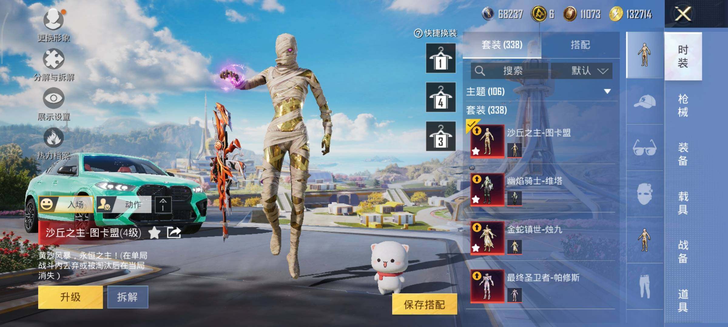 【红色神装等级】:最终圣卫者-帕修斯(二级),金蛇镇世-烛九(一级),幽焰骑士-维塔(一级),沙丘之主-图卡盟(四级)