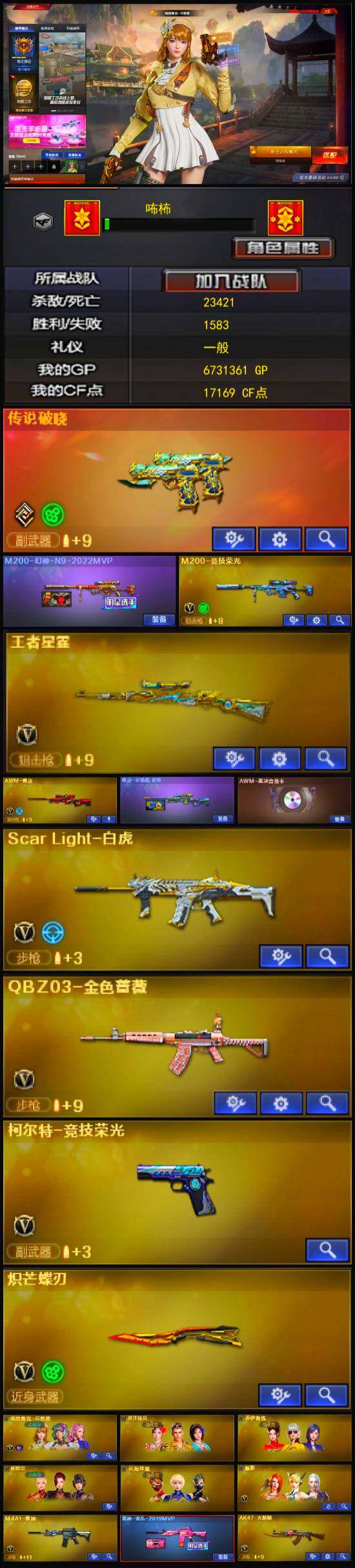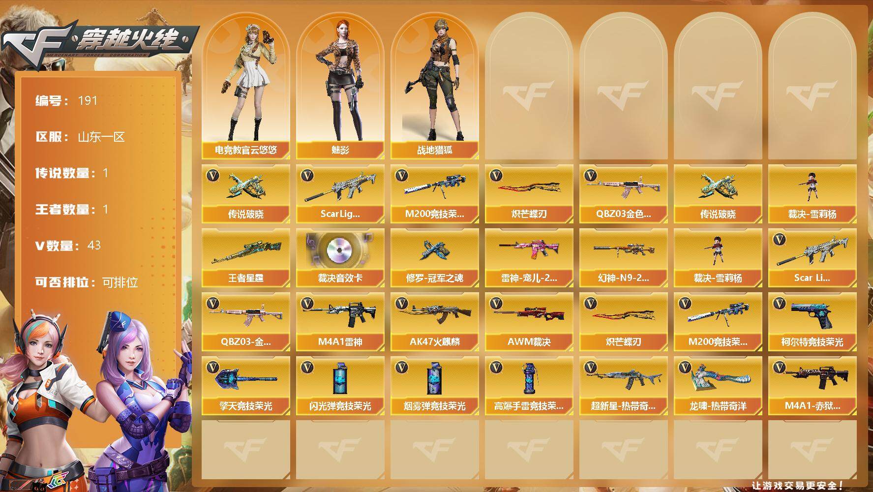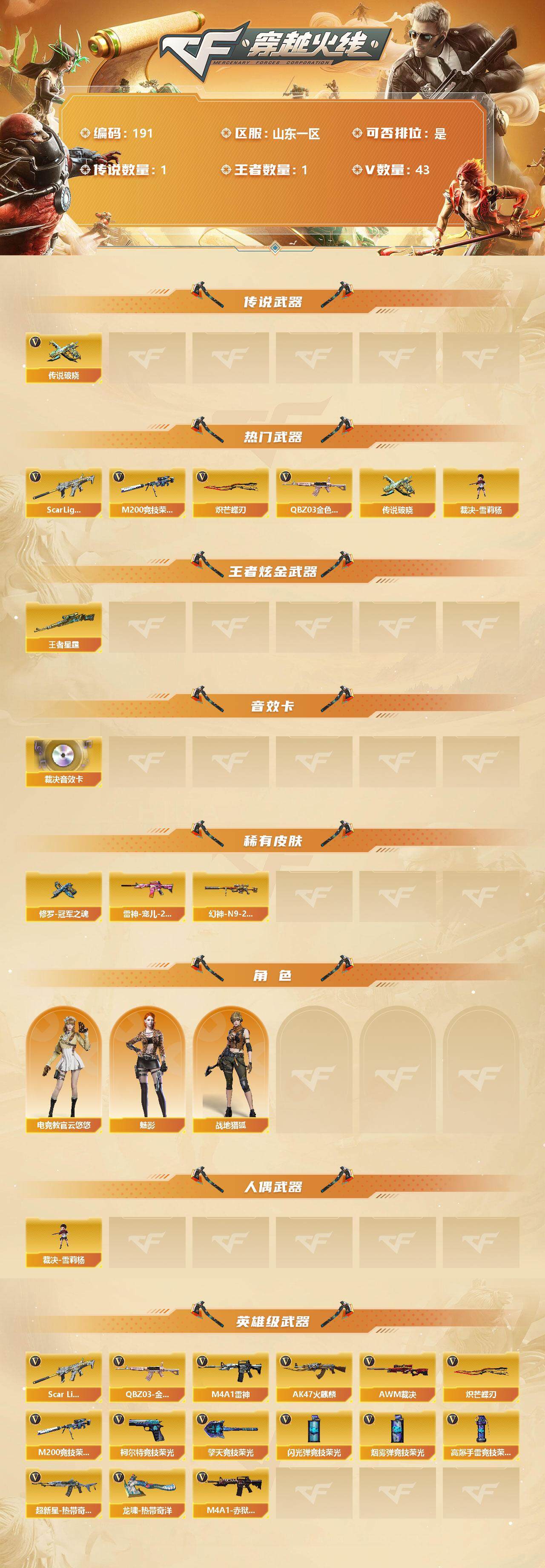 [12564021]【191】40V/100级/元帅/1传说/1王者/3英雄/传说破晓/QBZ03-金色蔷薇/Scar Light-白虎/M200-竞技荣光/裁决-雪莉杨/炽芒蝶刃/王者星霆/AWM-裁决音效卡/M200-幻神-N9-2022MVP/雷神-宠儿-2019MVP/修罗-冠军之魂/魅影/电竞教官-云悠悠/战地猎狐/柯尔特-竞技荣光/擎天-竞技荣光/高爆手雷-竞技荣光/烟雾弹-竞技荣光/闪光弹-竞技荣光/M4A1-雷神/AK47-火麒麟/AWM-裁决/超新星-热带奇洋/M4A1-赤狱骑士/龙啸-热带奇洋
