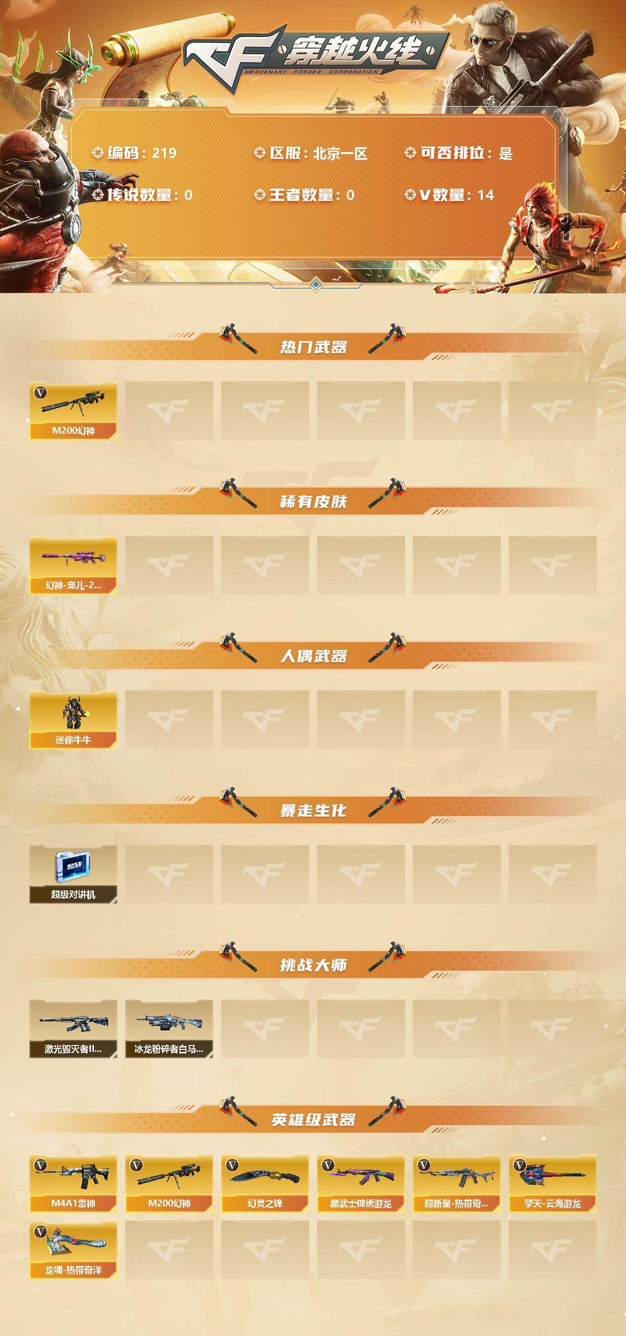 [12564096]【219】14V/87级/将帅/M200-幻神/幻神-宠儿/迷你牛牛/超级对讲机/激光毁灭者III-白马银枪/冰龙粉碎者-白马银枪/幻灵之锋/M4A1-雷神/AK47-黑武士-锦绣游龙/超新星-热带奇洋/擎天-云海游龙/龙啸-热带奇洋