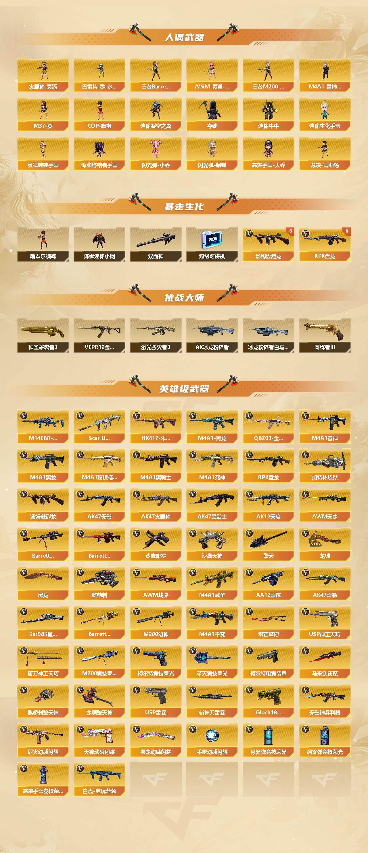 - PX_2086313-VIP8/175V/32王者/魄至尊/心至尊/怒至尊/王者之影/王者之怒/王者之心/王者之神/王者之锋/王者之魂/王者之魄-冠军珍藏/M4A1-雷霆王者/雷霆王者之锋/KSG-孟获/MK47-仁德/M4A1-仲达/AK47-奉先/M200-幻神/黑龙魂/M200-权/狙击枪线-荣耀/萝拉/月神-X/炽天使-X/零-新生/AK47-无影/AK47-火麒麟/AK47-沙漠郡主-二