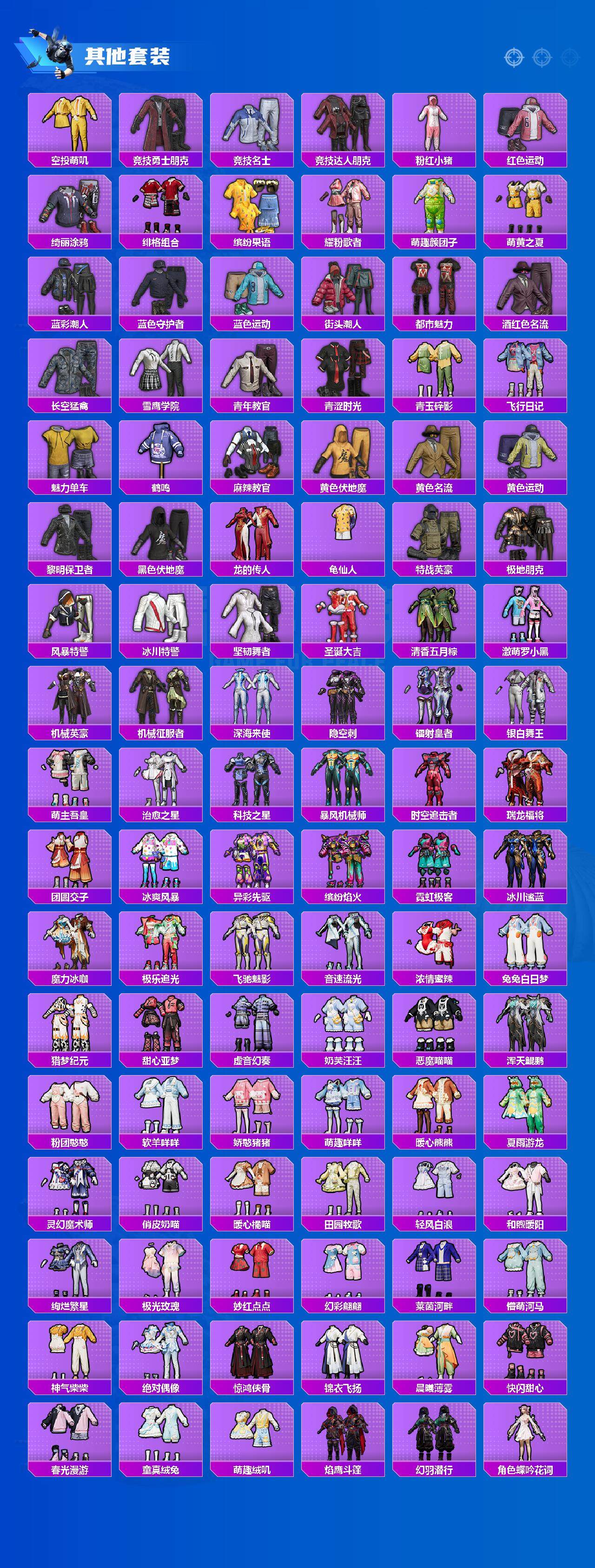 【粉色套装】:粉装-天使彩虹糖,粉装-蝶舞迷情,粉装-放客神游,粉装-冰霜白皇,粉装-童趣迷兔,粉装-炙焰红王,粉装-蓝莓炮弹,粉装-酣梦娃娃,粉装-恐龙拽拽,粉装-傲雪凌霜,粉装-霁雪冰心,粉装-第五大道,粉装-挚爱序曲,粉装-蜜语绒猫,角色-美雪,角色-脉冲星,粉装-金丰海韵,角色-千金淑猫,角色-樱桃泡泡,角色-绯穹魔姬