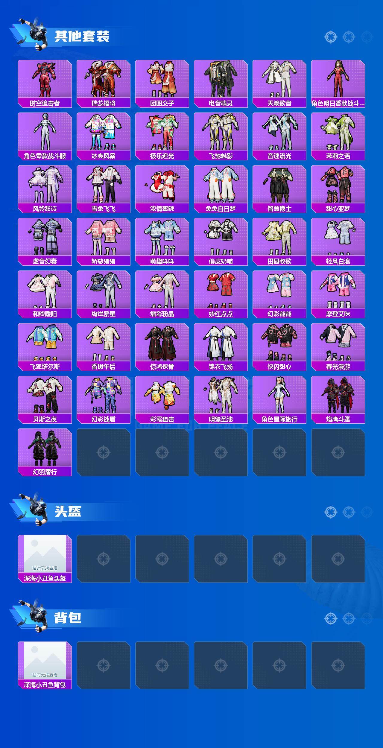 套装-龟仙人,套装-暗影哥特,套装-狂沙舞者,套装-弄潮海豚,套装-雪山精英,套装-山经魅狐,套装-梦起落英,套装-瑞龙福将,套装-团圆交子