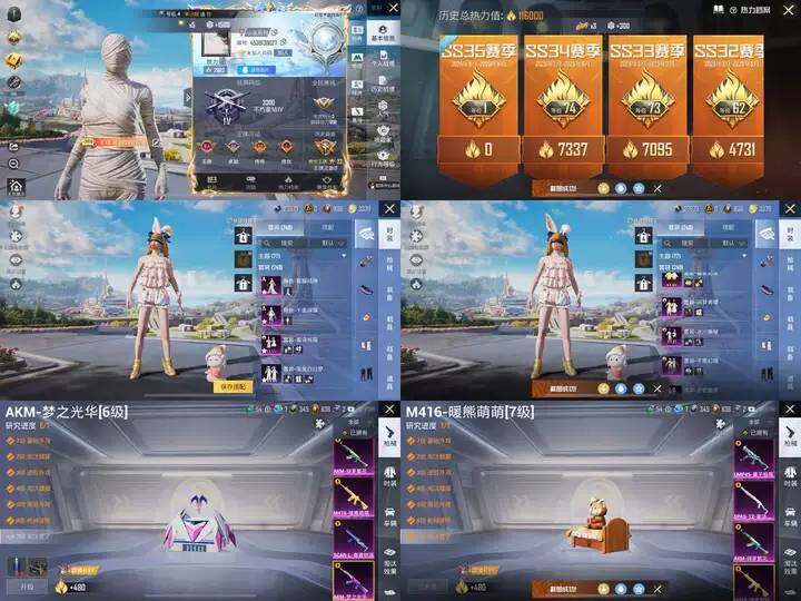 AKM-梦之光华,AKM-绿萝繁花,SCAR-L-青春物语,M416-暖熊萌萌,GROZA-镜光银凌,AUG-暖羊咩咩,UMP45-量子极限,Kar98K-巳巳如意,SPAS-12-蜜语绒猫