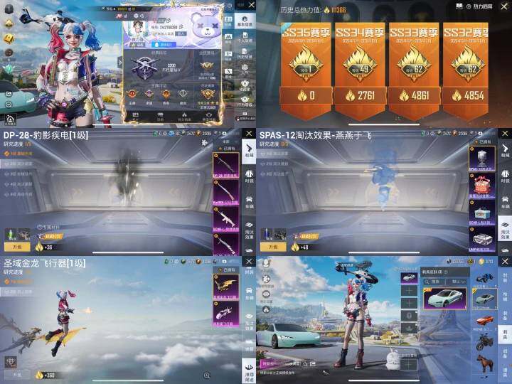 - [11972623]2粉装 5特效枪 1载具 15印记 可二次 可修改实名 身法装备:舞王派对(派对舞王、小金鞋),暗影哥特(红眼罩) 优质装备:兰博基尼Estoque(银翼灰),舞王派对(派对舞王、小金鞋),M416五爪金龙,快乐主宰,向日葵(套装-向日葵先生),七级M416-五爪金龙,GROZA-镜光银凌,萨利娅,AUG-暖羊咩咩,Kar98K-巳巳如意 时装数:858 枪械数:209 战备数:1 热门装扮:S1赛事上衣,蔷薇魔法师,万圣娃娃,梦魇先生,酷熊伴侣,深海小丑鱼,萌熊伴侣,派对舞王(小金鞋),绯红秘境 稀有枪皮:DP-28-豹影疾电 五级特效枪:五级GROZA-镜光银凌,五级Kar98K-巳巳如意,五级DP-28-豹影疾电,五级AUG-暖羊咩咩 紫色装扮:SS31特训套装,浪漫假日,SS30特训套装,SS23特训,SS33特训套装,青涩时光,幻彩翩翩,SS22特训,妙红点点,北国孤狼,午夜朋克,吉莉礼服,向日葵先生,圣诞大吉,坚韧舞者,夏日音浪,凛冬战士,夜莺强袭者,完美偶像,帅气教官,幻世保卫者,幻影武者,怒火燎原,刚毅裁决者,5.56爱好者,SS2特训,SS4特训,决胜时刻,SS5特训,云霄猎人,人气偶像,光速穿梭者,六六大吉,冰凉西瓜,冰川特警,时空追击者,暴风机械师,SS16特训,爆裂葡萄,瑞龙福将,团圆交子,SS17特训,萌趣颜团子,特种颜团子,青春冒险家,潮流游乐家,SS15特训,SS18特训,飞驰魅影,音速流光,SS19特训,战地英姿,黎明保卫者,骑行爱好者,魅力单车,黄色伏地魔,黄色名流,黄色格斗者,黄色运动,黑色伏地魔,龙的传人,龟仙人,香桃花海,青年教官,迎春赐吉,都市漫游者,酒红色名流,酷潮明星,霸义无双,金鼠迎春,长空猛禽,阳光火鸡,雪山征服者,雪山精英,雪鹰学院,霓虹极客,霓虹街区,熔岩游骑兵连帽夹克,跃动心情,超能勇士,战地菁英,深蓝色名流,清新柠檬,湖蓝色名流,滨海假日,滨海厨神,灰色格斗者,涂山之恋,炫蓝之夏,热血青春,热血骑手,熔岩使者,牛气冲天,牛气满满,特工巴纳纳,特工红苹果,特工青苹果,特战英豪,战地领军,极地朋克,柠萌假日,橘黑制服,沙漠兵团,派对绅士,特战装甲,红色运动,绮丽涂鸦,缤纷假日,缤纷果语,蓝彩潮人,蓝色守护者,蓝色运动,虎虎生威吉莉,血色贵族,紧急救援,竞技达人朋克,狂战萌兔,狂沙舞者,猎鹰,猛禽,王牌教练,甜