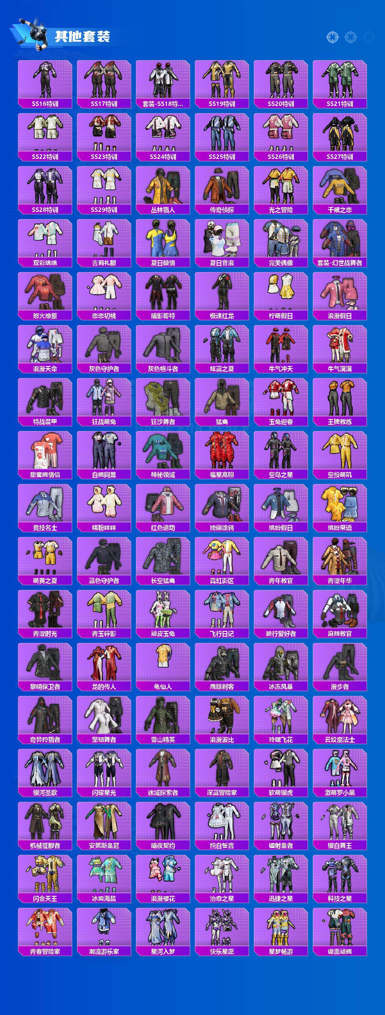 套装-浪漫天命,套装-龟仙人,套装-暗影哥特,套装-极速红龙,套装-狂沙舞者,套装-漫步者,套装-雪山精英,套装-安第斯皇冠,套装-暗夜契约,套装-纯白誓言,套装-冰爽海盐,套装-诡面顽熊,套装-瑞龙福将,套装-团圆交子