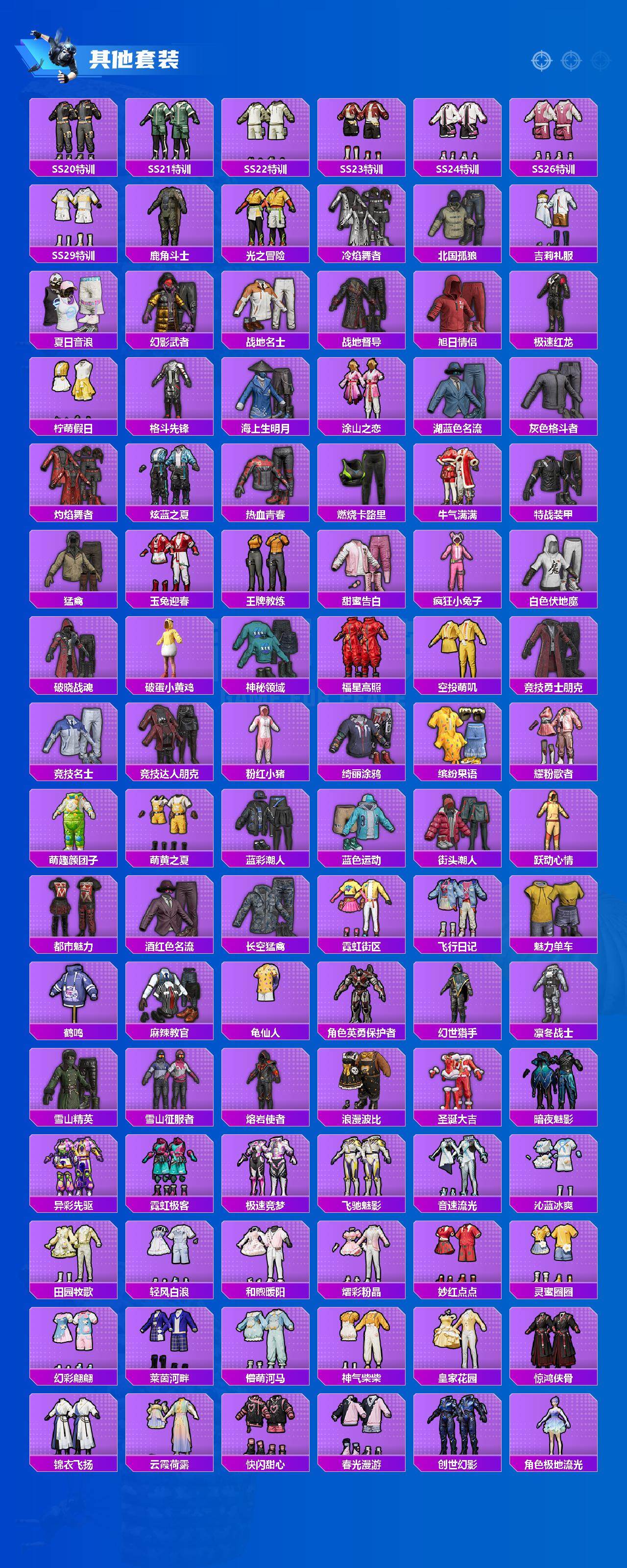 角色-军刀雅典娜,套装-龟仙人,套装-粉红小猪,套装-极速红龙,套装-破蛋小黄鸡,角色-英勇保护者,套装-雪山精英