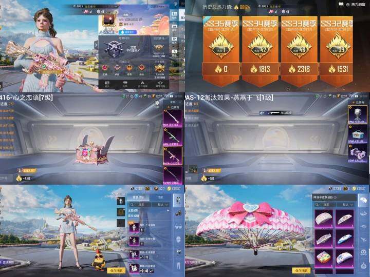 【粉色枪皮等级】:AKM-绿萝繁花(五级),SCAR-L-锦绣绵绵(五级),M416-心之恋语(七级),Kar98K-伏魔团(五级),Kar98K-巳巳如意(五级),M24-莲影清波(二级),DP-28-圣堂之誓(四级),DP-28-豹影疾电(一级)