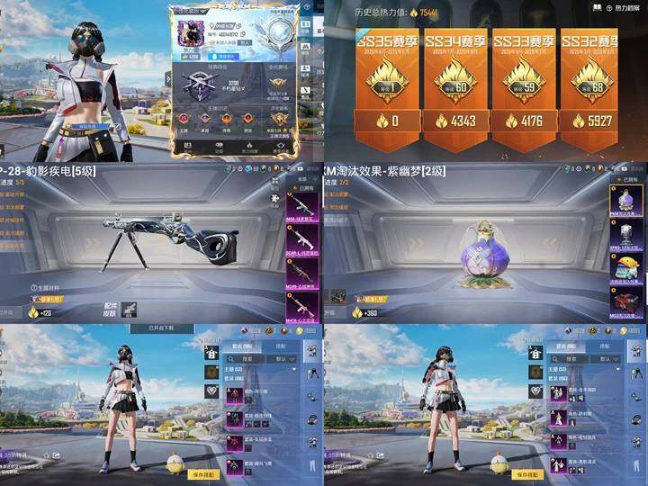【粉色枪皮等级】:AKM-绿萝繁花(五级),SCAR-L-纯梦嫁纱(六级),M416-心之恋语(一级),Kar98K-巳巳如意(五级),M249-古战神甲(三级),DP-28-豹影疾电(五级)