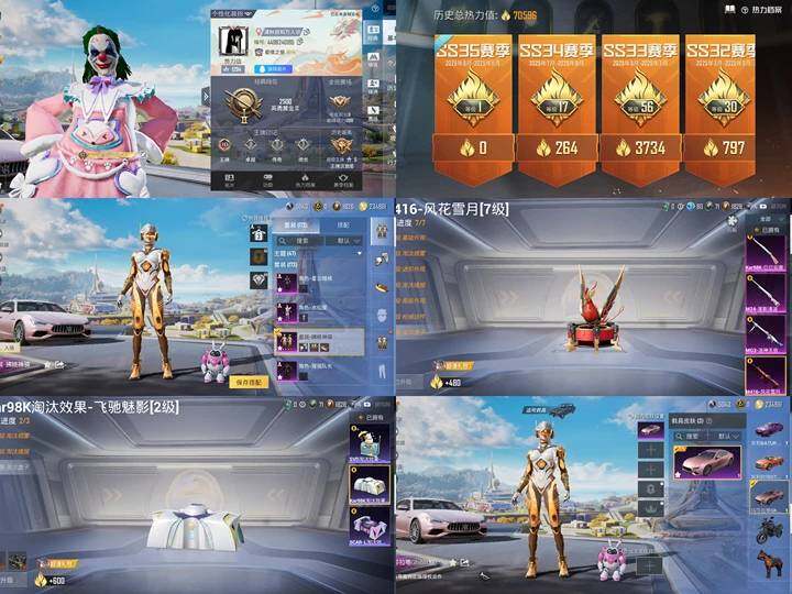 - [12248340]素材身法号【特价急出/详情看图】:苹果 手Q-6粉装-5特效枪-1载具-1粉色飞行器-5.4w热力值-8王牌印记-123套装-181枪皮【热门品类】:粉装-梦幻火箭,套装-浪漫天命,套装-都市猎人,套装-动感兔斯基人偶服,套装-暗影哥特【粉色载具】:双人摩托-梦幻火箭【粉色套装】:粉装-天使彩虹糖,粉装-梦幻火箭,角色-洛天依,角色-幻影,角色-千金淑猫,角色-异瞳寒姬【粉色枪皮等级】:AKM-梦之光华(七级),M416-五爪金龙(七级),Kar98K-巳巳如意(五级),DP-28-豹影疾电(五级),MG-36-沧焰双生(五级)【粉色飞行器】:梦幻火箭飞行器