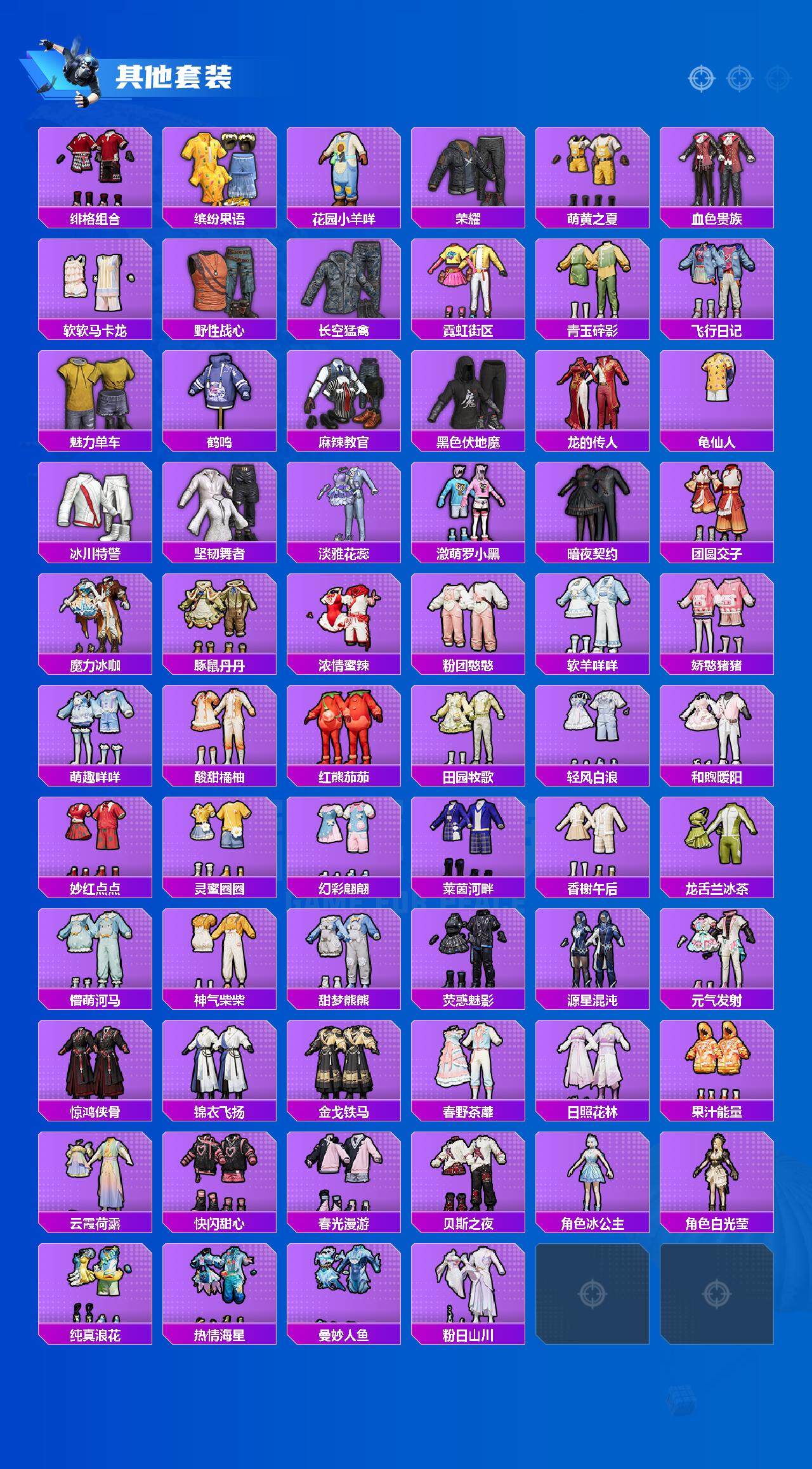 【粉色套装】:粉装-宝贝奶油派,粉装-天使彩虹糖,粉装-缤纷油彩,粉装-星空之魅,粉装-冰霜白皇,粉装-童趣迷兔,粉装-山涧鹿灵,粉装-精灵娃娃,粉装-冰川幽秘,粉装-瑰丽时代,粉装-飒粉甜心,角色-呆萌星弥,角色-小可学妹,粉装-未来歌姬,粉装-炫光之旅,粉装-憨憨奶龙,粉装-金丰海韵,角色-月影灵韵,角色-樱桃泡泡,角色-绯月迷踪,角色-荧海星豚