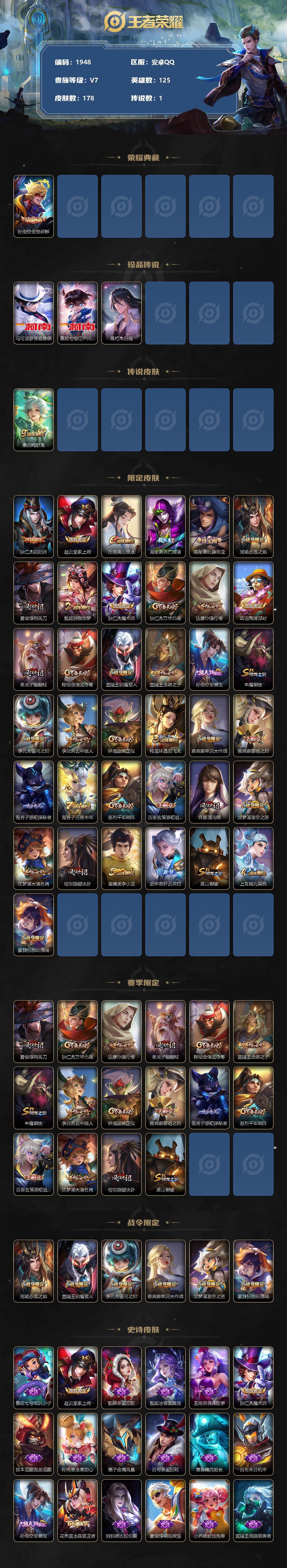 [12584520]安卓Q-V7-至尊星耀III段位-125英雄-178皮肤-1典藏-0珍品无双-0无双-3珍品传说-1传说-49史诗