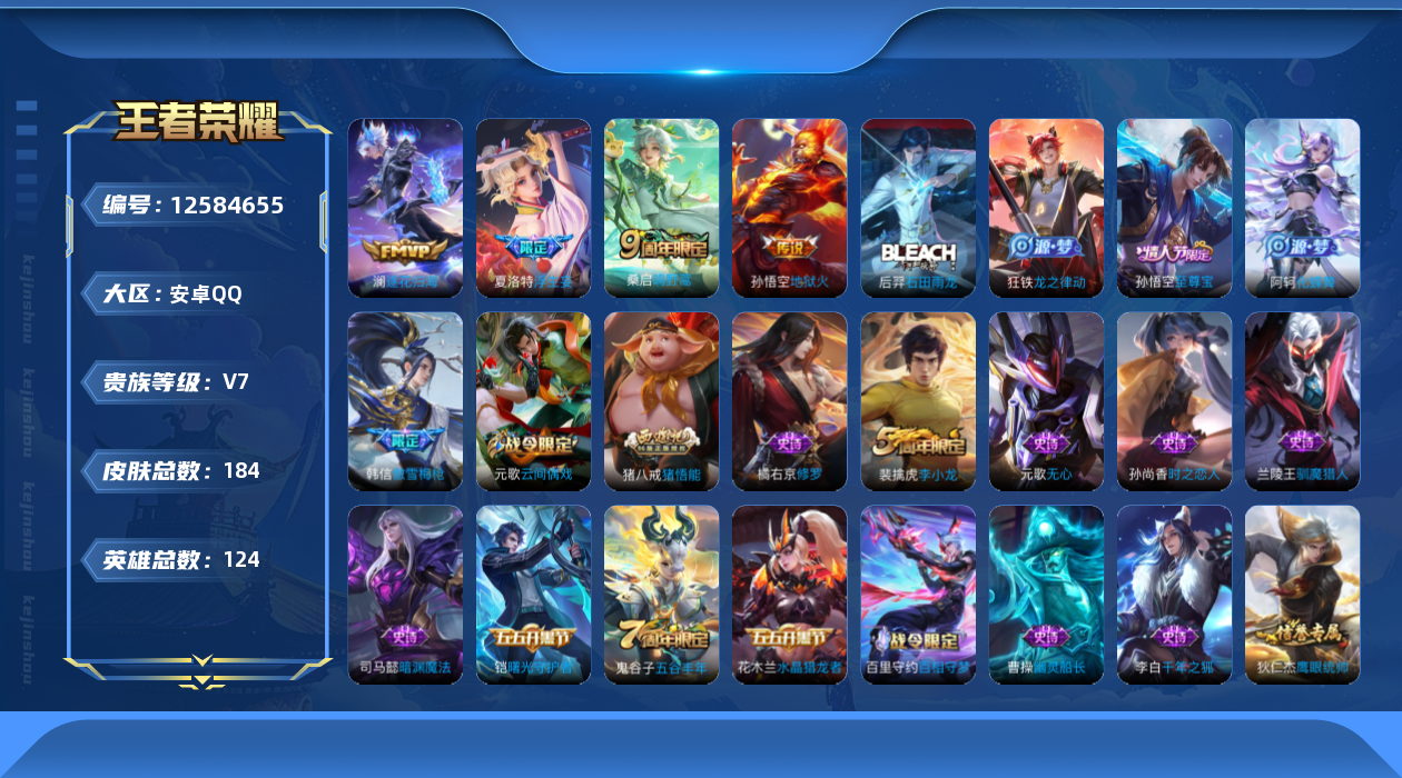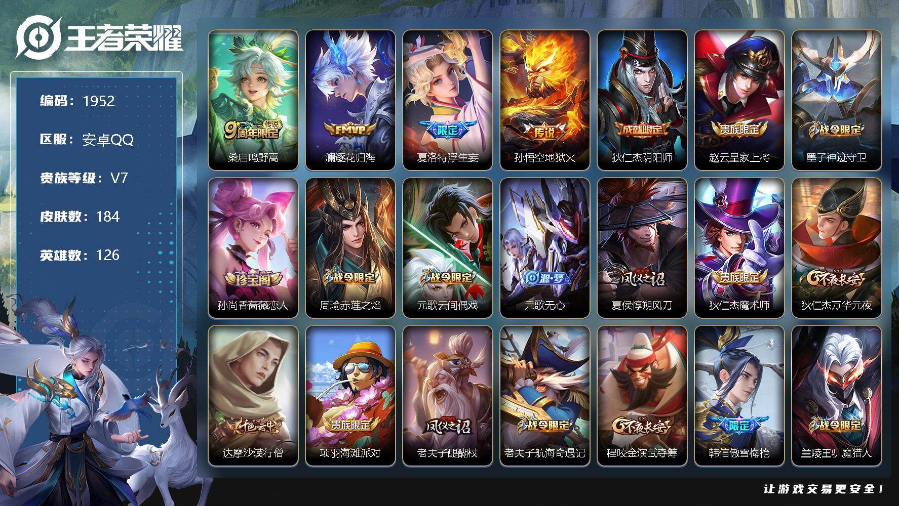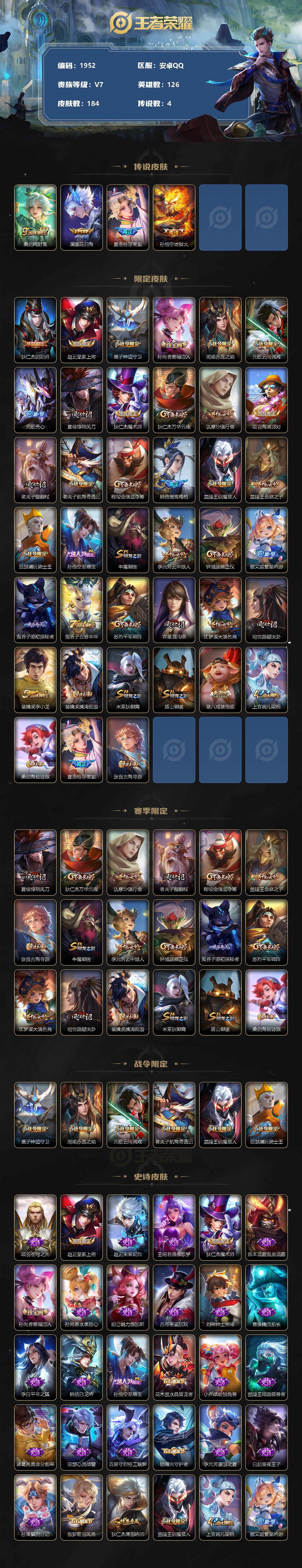 [12584655]安卓Q-V7-至尊星耀II段位-126英雄-184皮肤-0典藏-0珍品无双-0无双-0珍品传说-4传说-45史诗