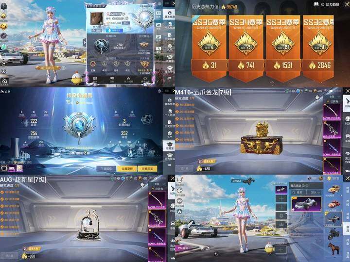 【粉色枪皮等级】:SCAR-L-青春物语(七级),M416-五爪金龙(七级),AUG-超新星(七级),Kar98K-巳巳如意(五级)