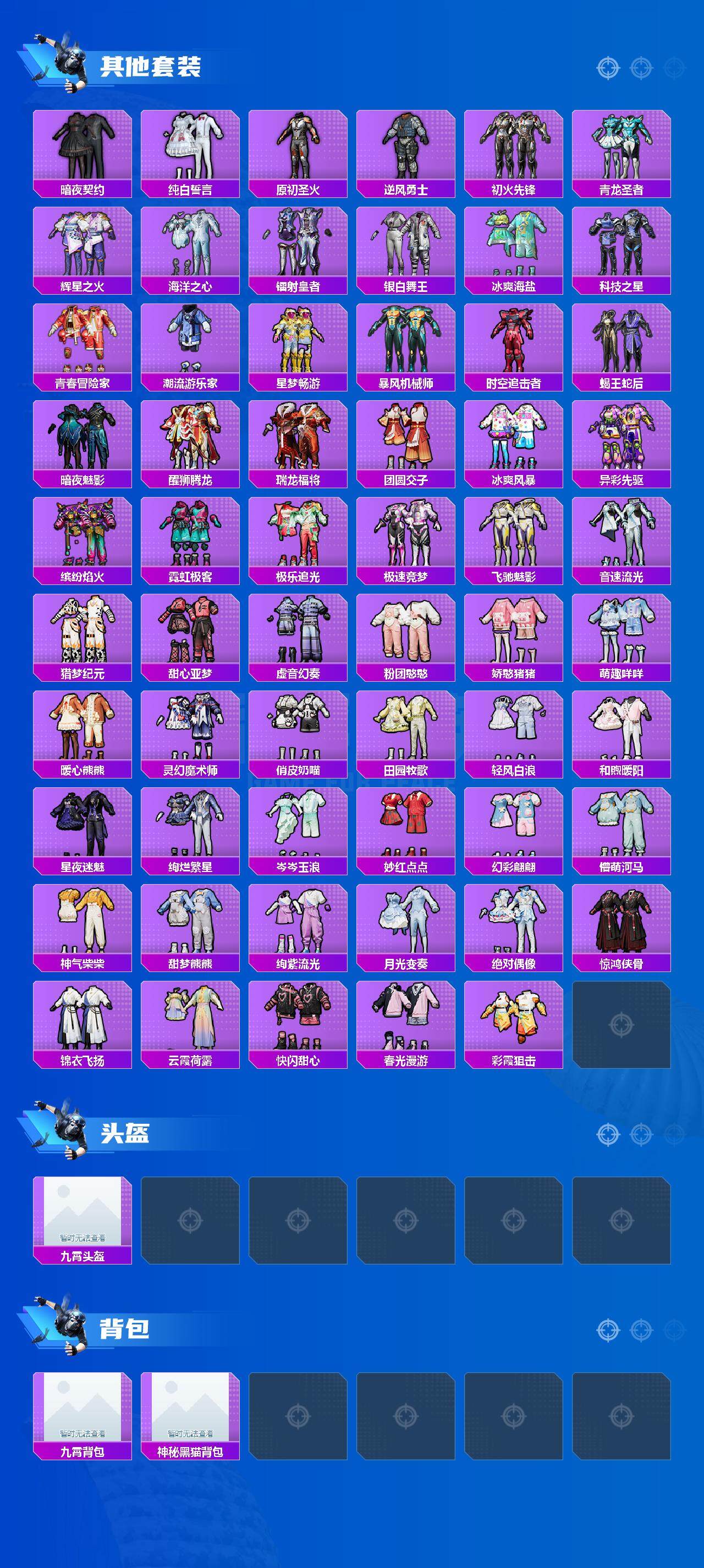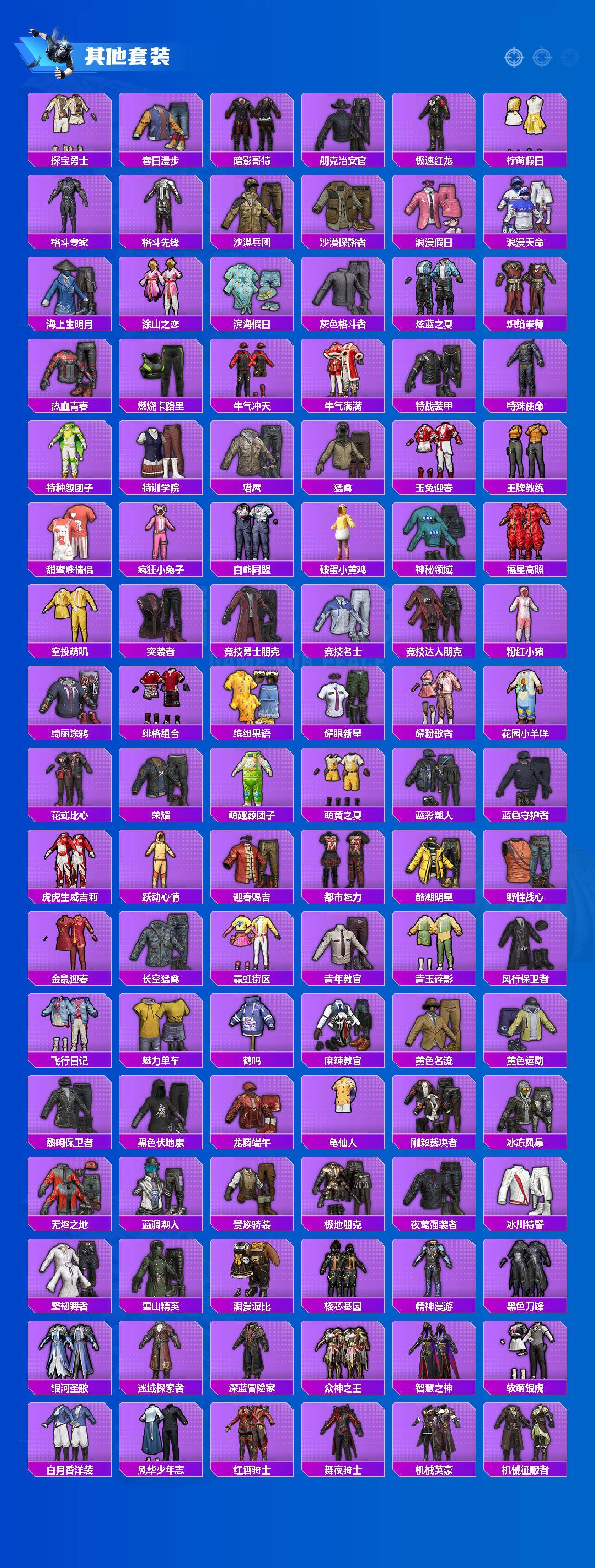 套装-浪漫天命,套装-龟仙人,套装-暗影哥特,套装-粉红小猪,套装-极速红龙,套装-破蛋小黄鸡,套装-雪山精英,套装-黑色刀锋,白月香洋装套装,风华少年志套装,套装-机械英豪,套装-暗夜契约,套装-纯白誓言,套装-青龙圣者,海洋之心套装,套装-冰爽海盐,套装-醒狮腾龙,套装-瑞龙福将,套装-团圆交子