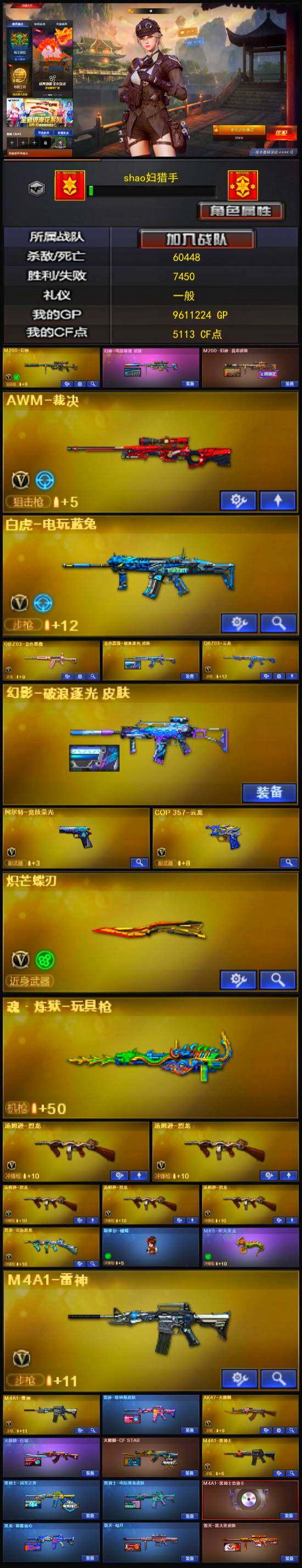 【热门武器】:QBZ03-金色蔷薇,M200-幻神,金色蔷薇-古蛇迷踪,修罗-古蛇迷踪,白虎-电玩蓝兔,金色小号,M4A1-黑骑士,汤姆逊-烈龙*5,斯泰尔-蝴蝶,MK5-炽火炎龙,沙鹰-修罗,炽芒蝶刃