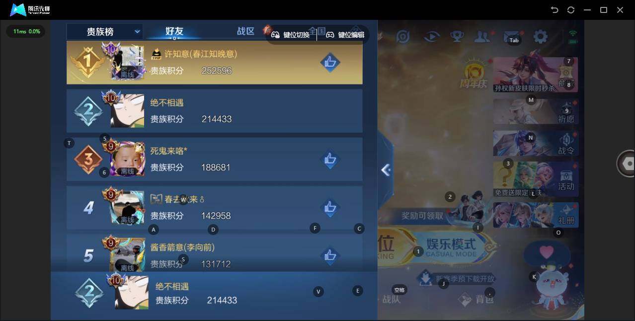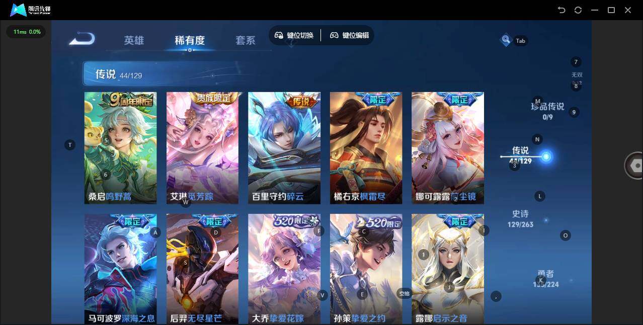 - [12059146]V7 1无双 6传说 123英雄 224皮肤 可修改实名 女号 优质装备:神器·明辉仪,绛天战甲(鸡嘴战神),猫影幻舞,炽阳神光,地狱火,神器·明辉仪,涂山容容 珍宝阁皮:优雅恋人,蔷薇恋人 限定皮:至尊宝,异界灵契(白毛香),傲雪梅枪,绯月行,神威(电光马子),高山流水,五谷丰年,梁祝,李小龙,朱雀志(守约年限),如梦令-后羿,孙行者,猪悟能,大圣娶亲,美猴王 史诗皮:百相守梦-黄忠,紫霞仙子,电玩小子(小书包),特工魅影,魅语,冰冠公主,晚萤,电玩·爆裂旋风,龙骑士(小龙虾),末日机甲-吕布,猫狗日记-大乔,时之恋人-孙尚香,乱世虎臣,女仆咖啡,水果甜心,星夜王子,心灵骇客,暗隐猎兽者,鬼剑武藏,心灵战警,舞动绿茵,地狱岩魂,纤云弄巧,繁星吟游(呼啦呼啦),拒霜思,缤纷独角兽,乘风破浪,金属风暴,圣诞狂欢,圣诞恋歌,鹰眼统帅,魅力维加斯,赏金猎手,无心,未来纪元-赵云