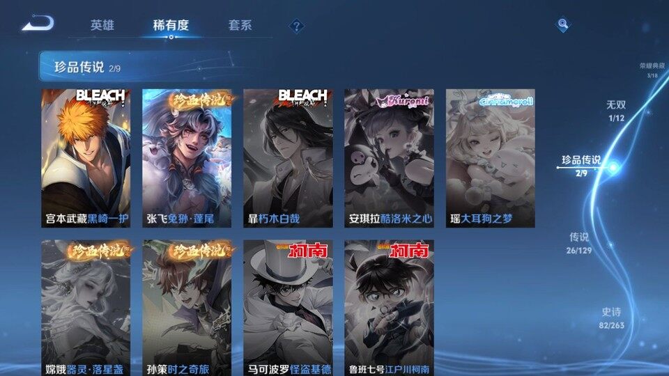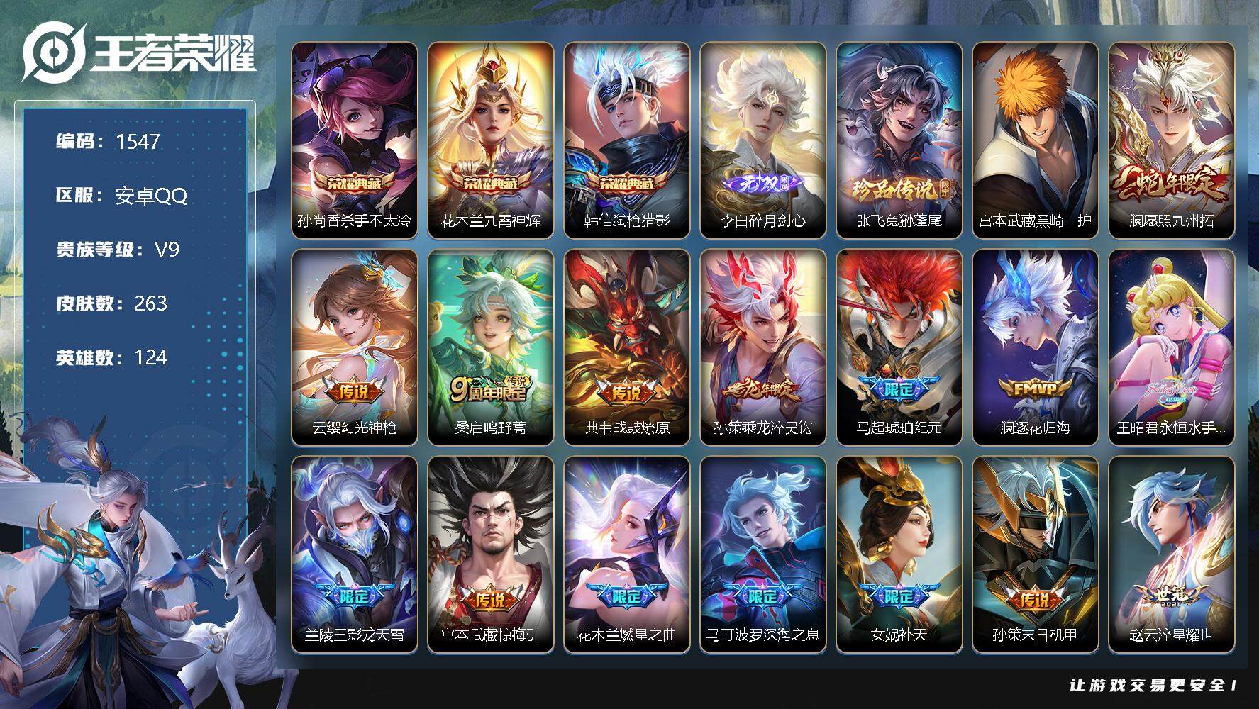 [12594380]安卓Q-V9-最强王者段位-124英雄-263皮肤-3典藏-0珍品无双-1无双-2珍品传说-26传说-82史诗