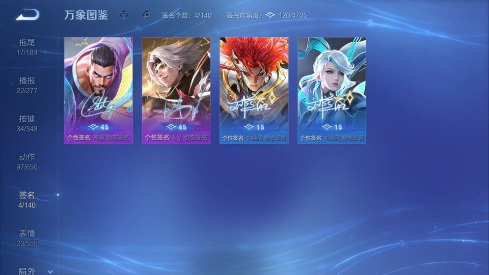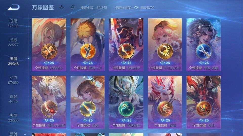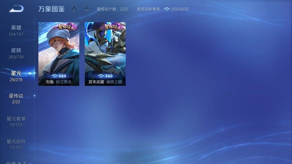 达摩黄金狮子座,铠绛天战甲,曜云鹰飞将,镜炽阳神光,李信一念神魔,赵云淬星耀世,刘备时之恋人,孙策末日机甲,宫本武藏惊梅引,王昭君永恒水手月亮,澜逐花归海,马超琥珀纪元,孙策乘龙·淬吴钩,典韦战鼓燎原,云缨幻光神枪