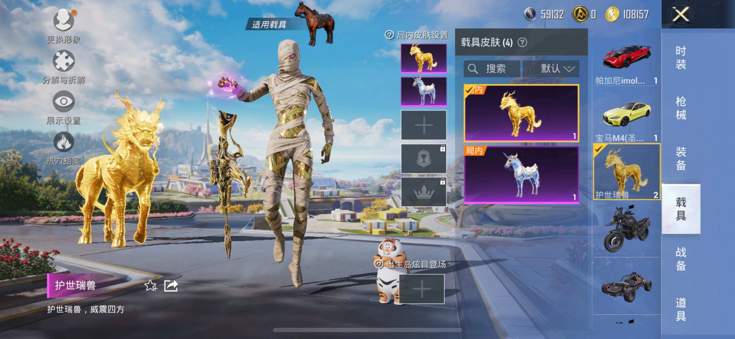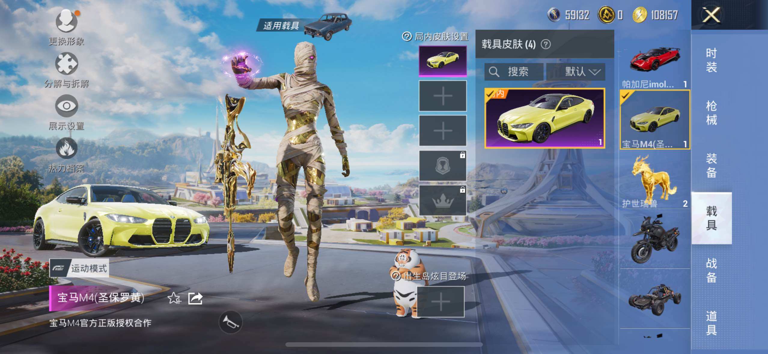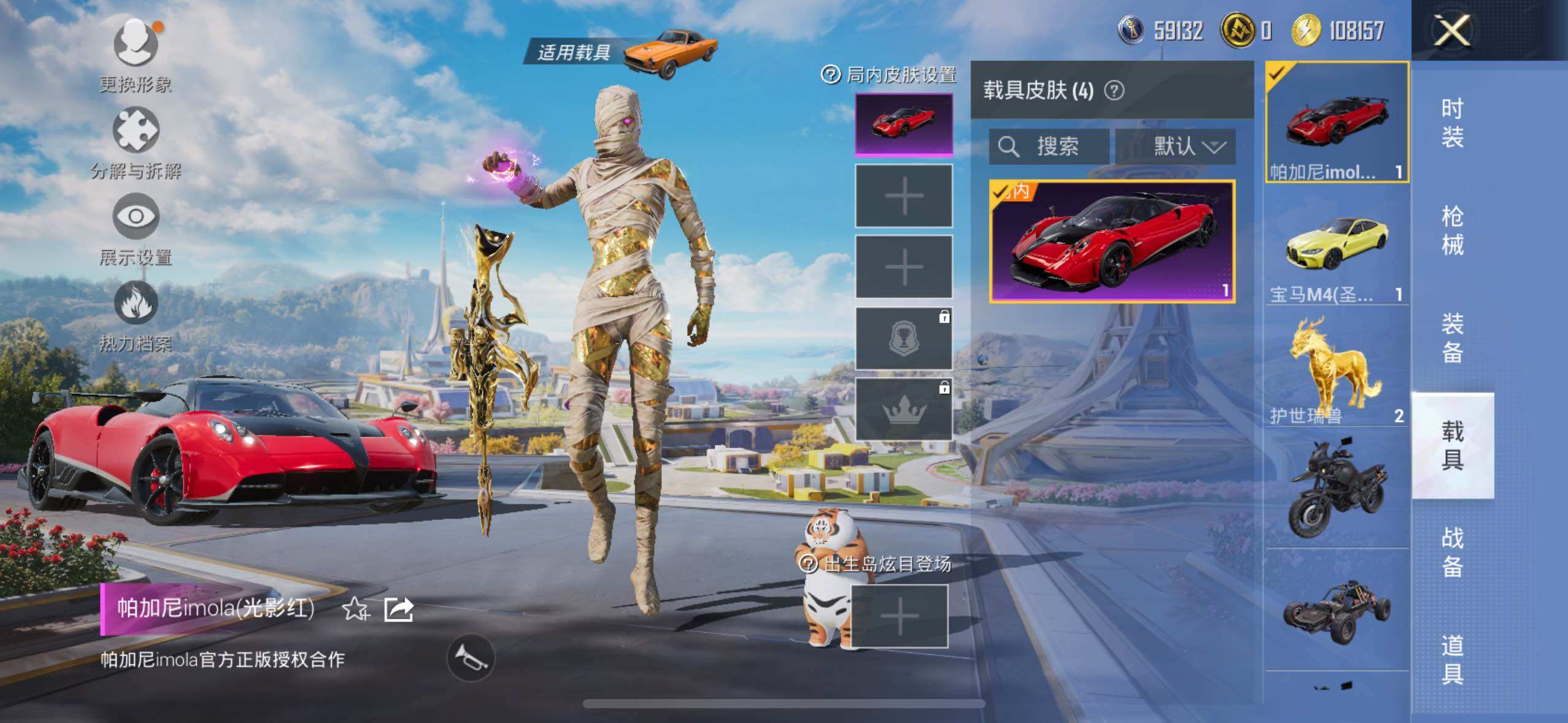 【粉色载具】:宝马M4(圣保罗黄),帕加尼imola(光影红),星梦玉骢,护世瑞兽