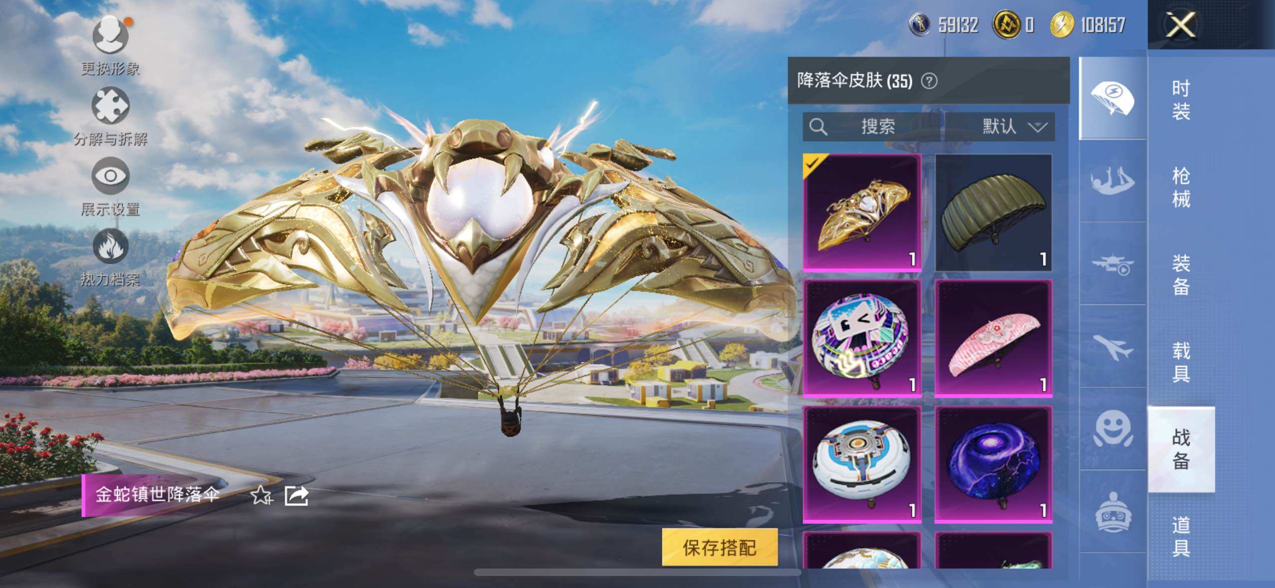 【粉色降落伞】:梦幻火箭降落伞,星梦奇缘降落伞,初号机 觉醒Ver.降落伞,金丰海韵降落伞,宇宙意志降落伞,未来领航者降落伞,幽焰骑士降落伞,临安公主降落伞,金蛇镇世降落伞,幻彩电音降落伞