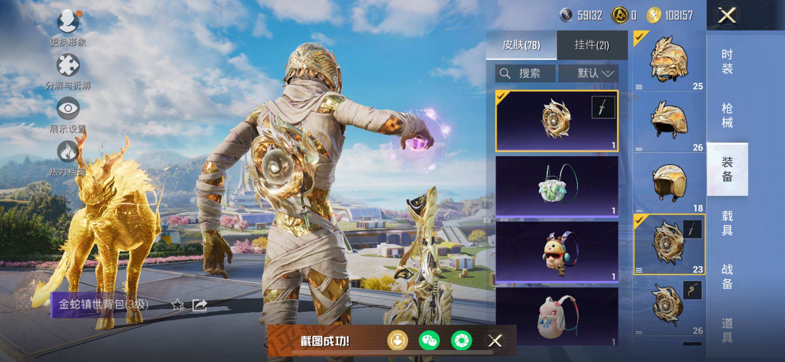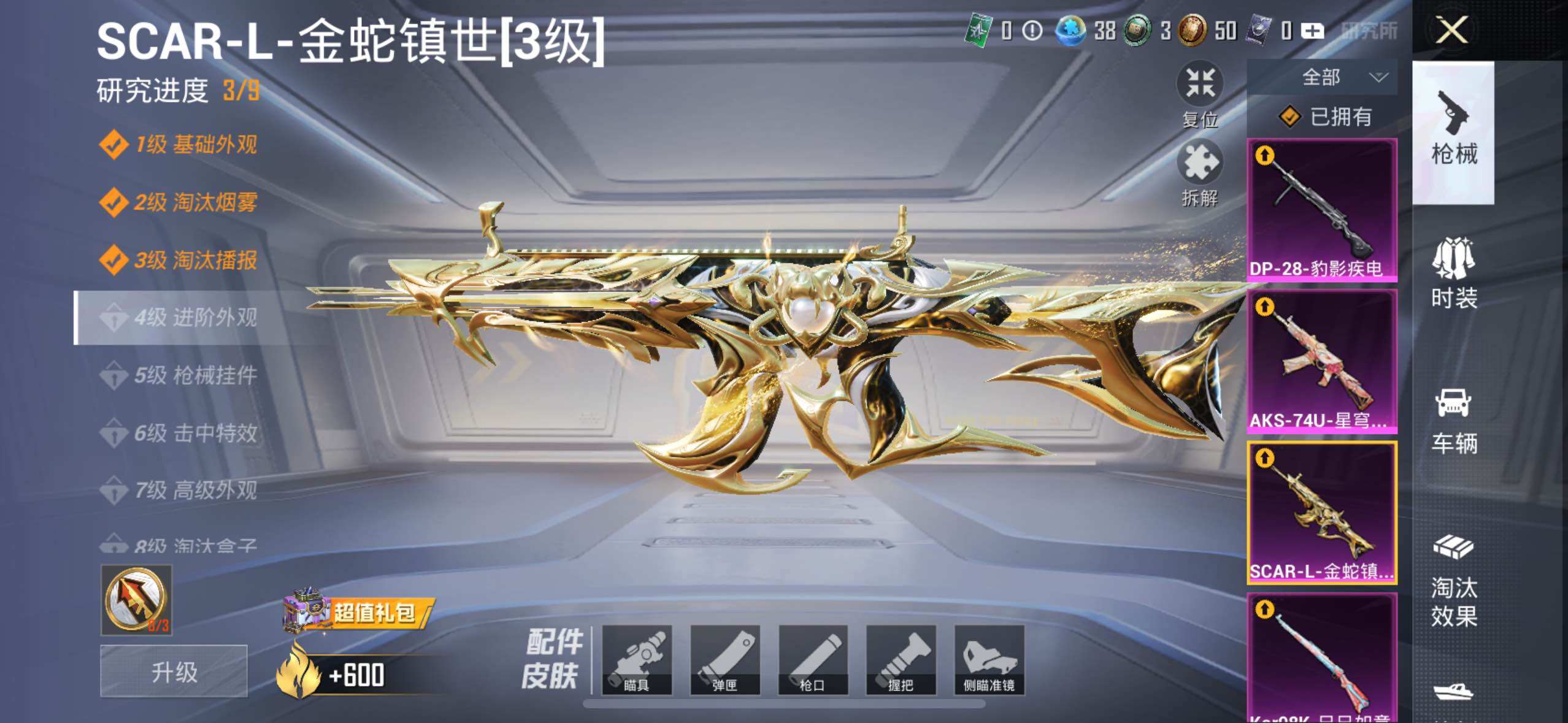 【稀有枪皮】:SCAR-L-小狗蛇点点,AUG-天降萌叽,AUG-金蛇镇世,Mk47-洛神天依,G36C-星穹咏叹调,蜜獾-天降萌叽,Famas-镜域双华,UZI-天降萌叽,