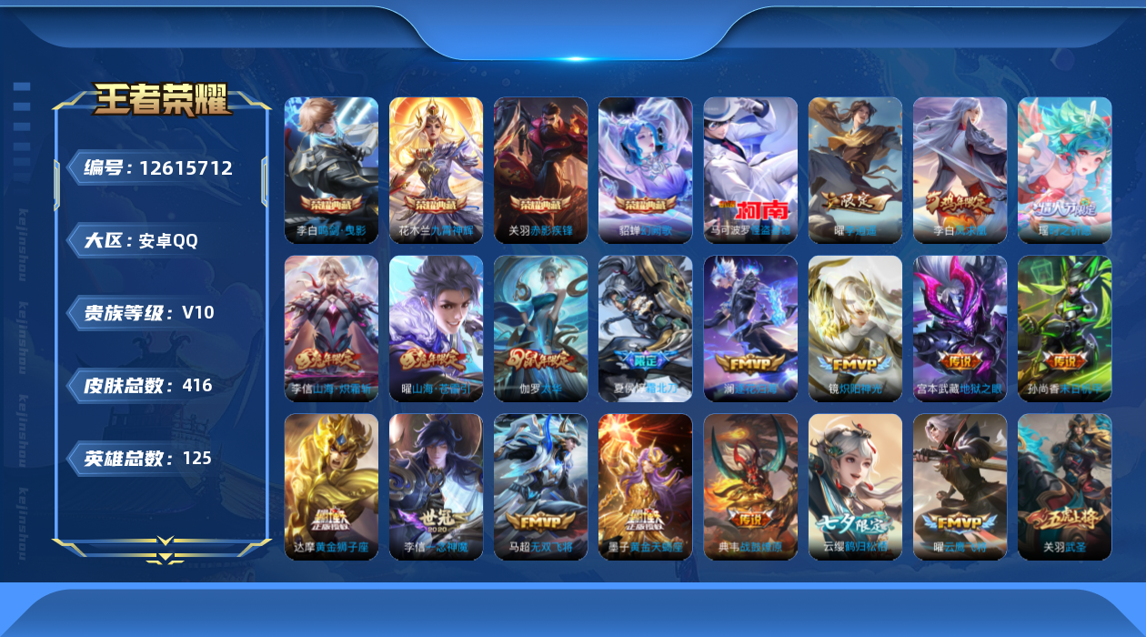 [12615712]安卓Q-V10-永恒钻石II段位-125英雄-416皮肤-4典藏-0珍品无双-0无双-1珍品传说-54传说-124史诗