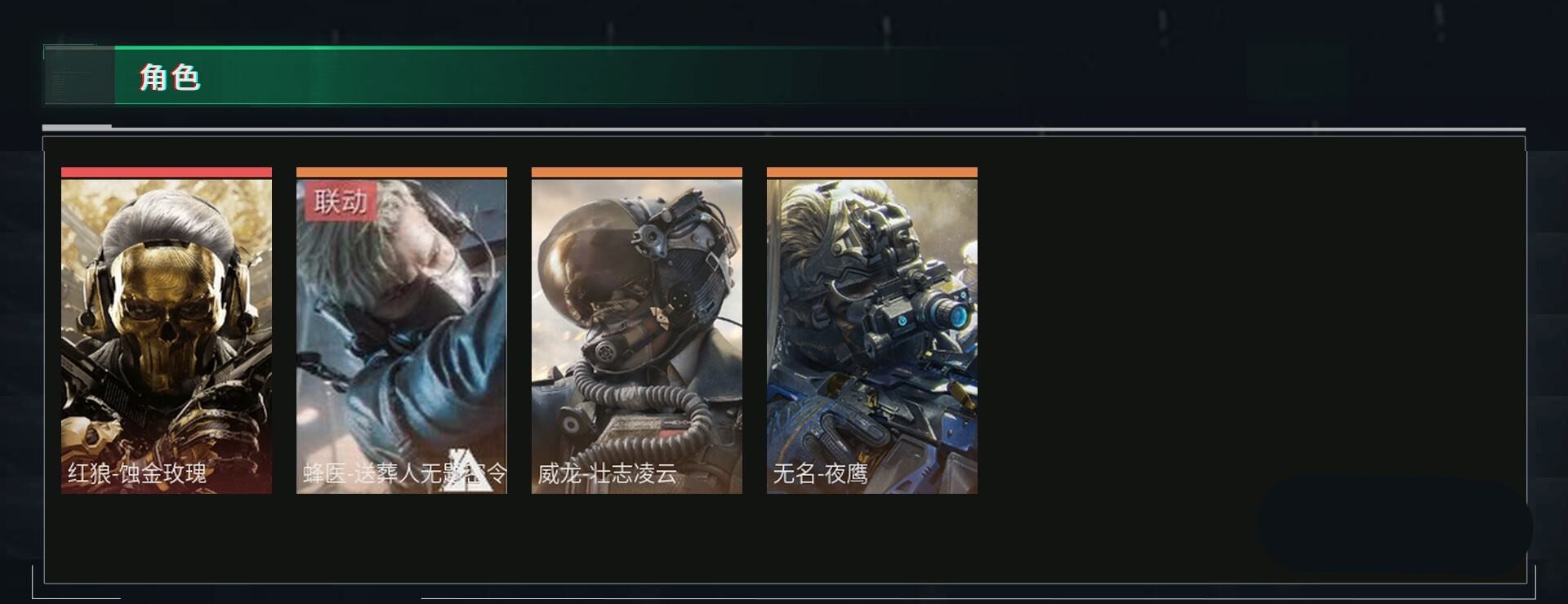 【干员外观】:红狼-蚀金玫瑰,威龙-壮志凌云,蜂医-送葬人·无题密令,无名-夜鹰