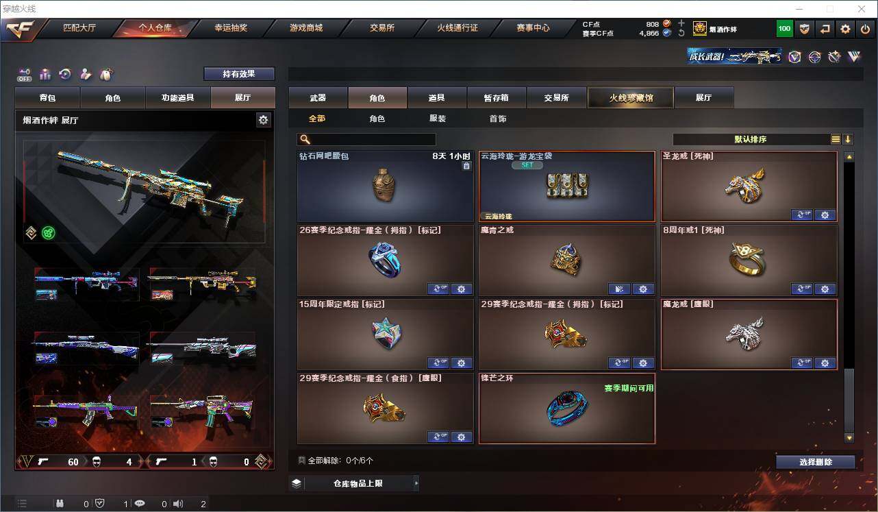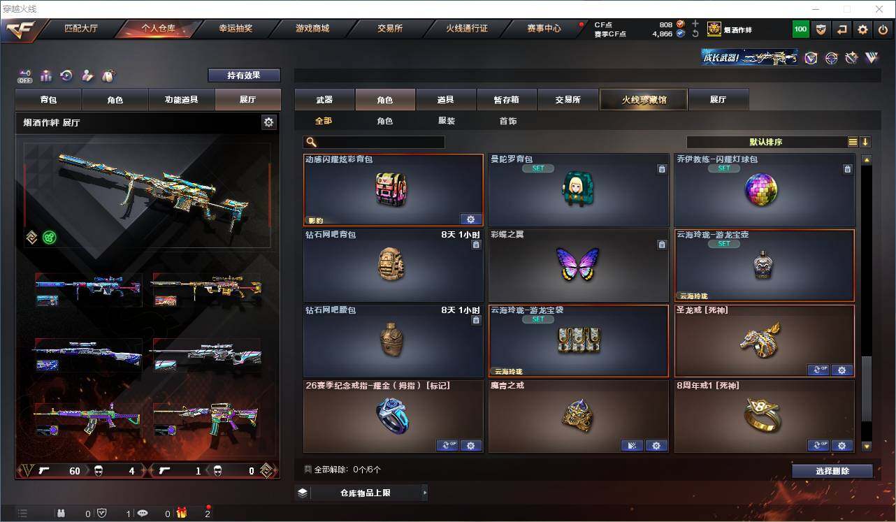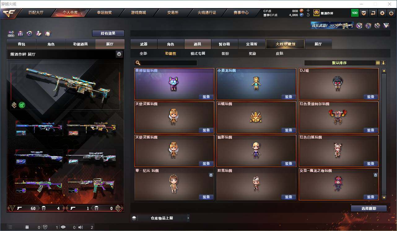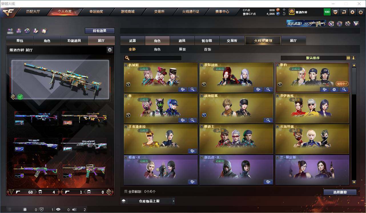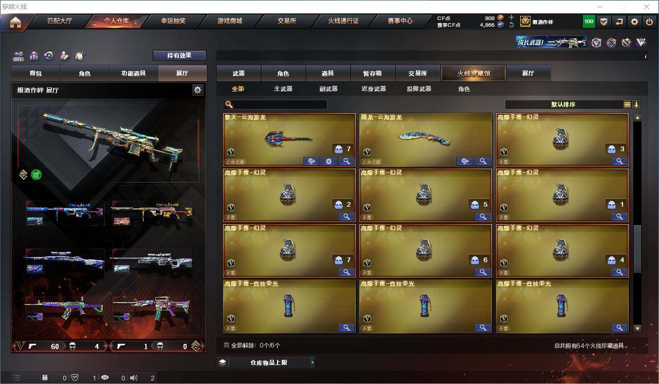 【热门武器】:传说灵眸,QBZ03-金色蔷薇,Scar Light-白虎,M4A1-青龙,M200-幻神*2,Kar98K-星神,C.A.T,M4A1-黑骑士,加特林-炼狱,M4A1-小神龙,COP-白鲨*2,COP 357-幻灵,沙鹰-修罗*2,柯尔特-赛博朋克,Knife-冠军之刃,黄金猫猫手套-白鲨
