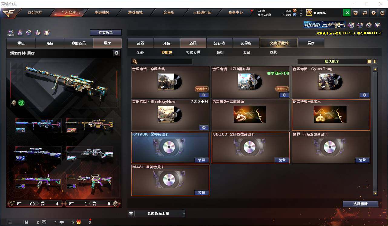 【音效卡】:修罗-云海游龙音效卡,M4A1-雷神音效卡,QBZ03-金色蔷薇音效卡,Kar98K-星神音效卡