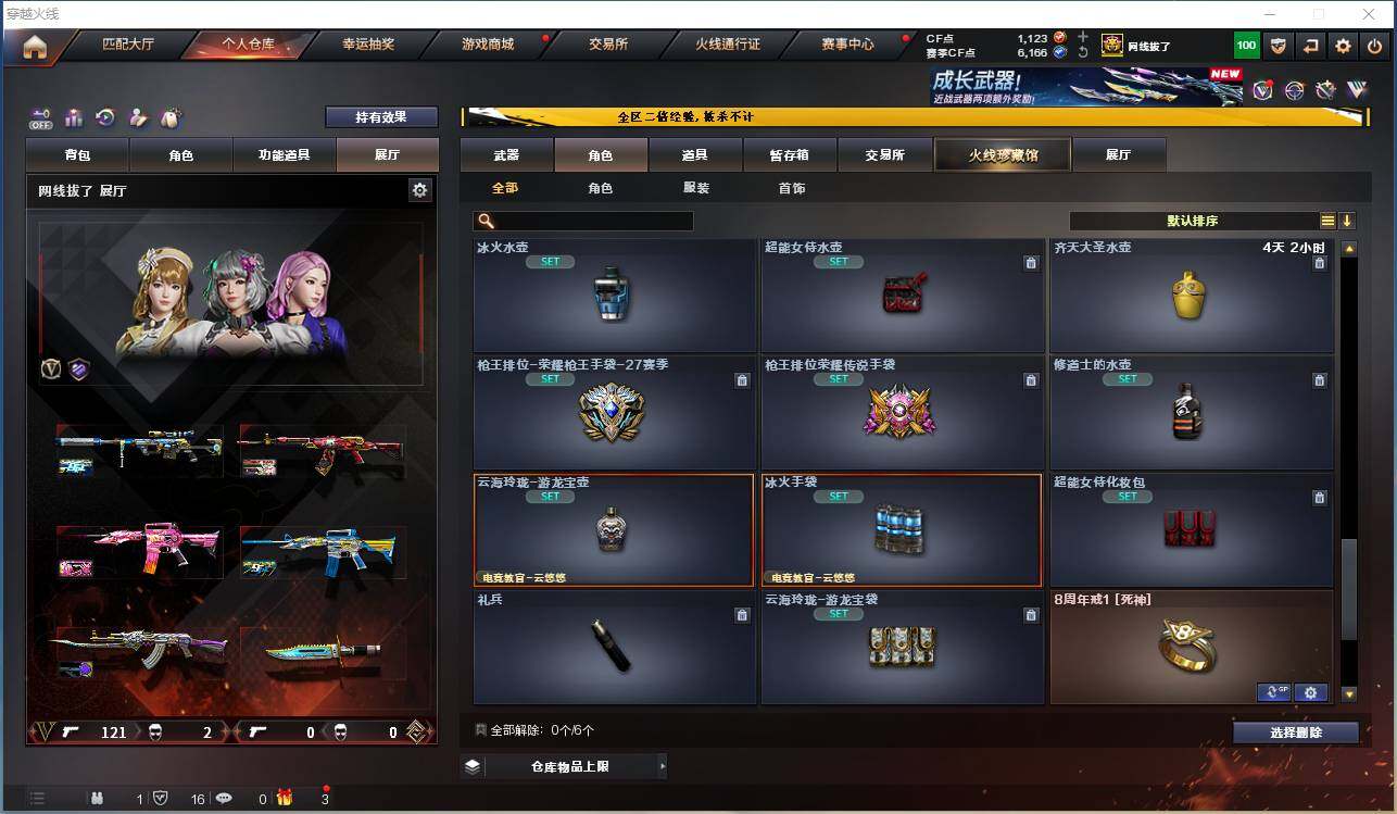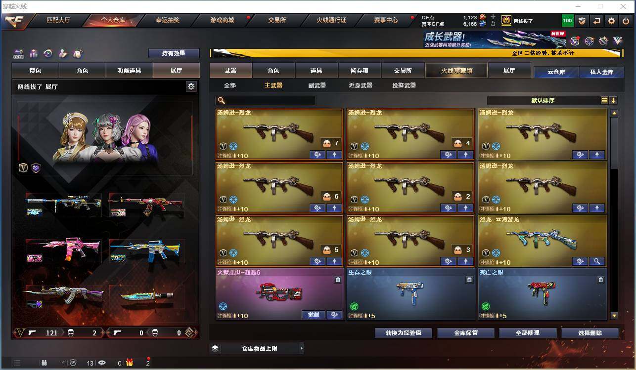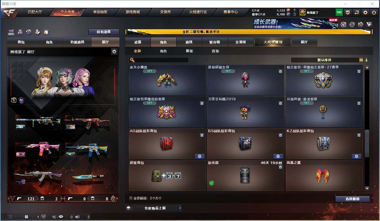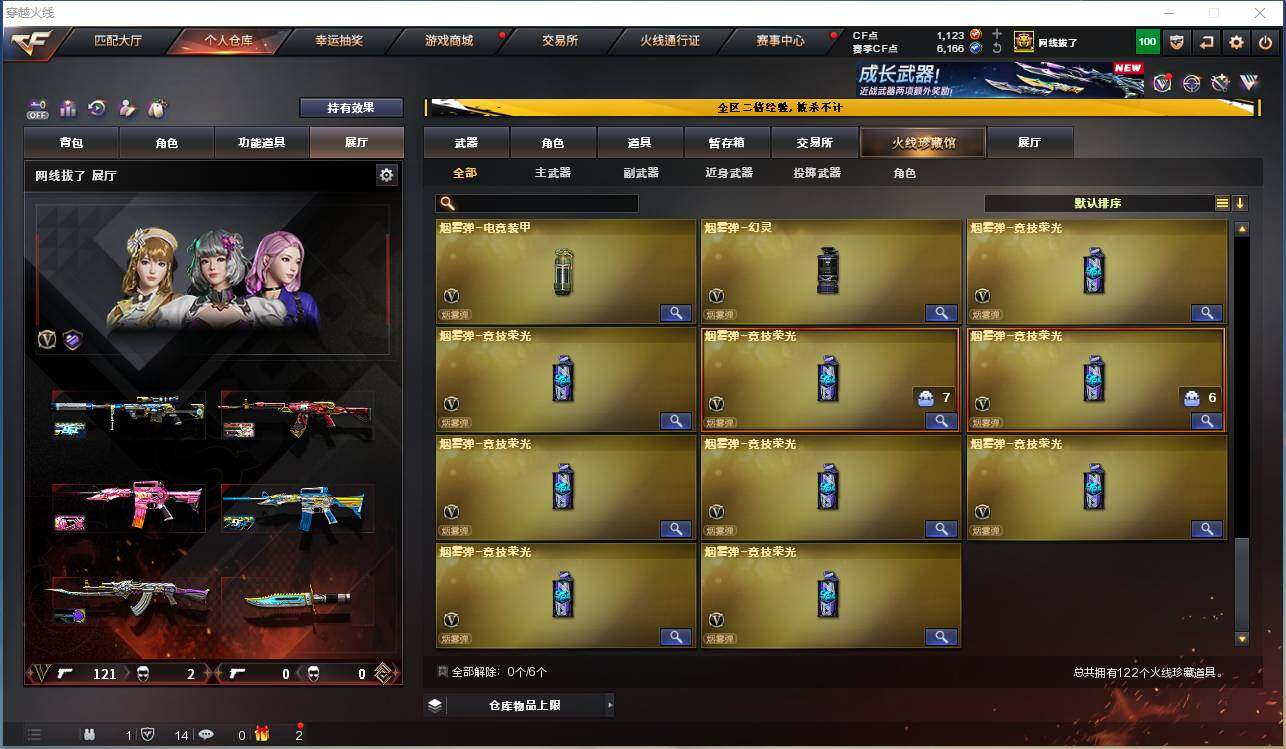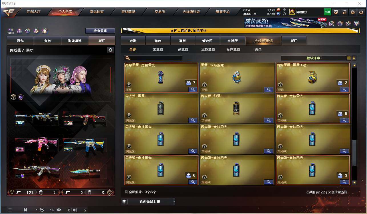 【人偶武器】:降世魔童,裁决-雪莉杨,天龙-曼陀罗,火麒麟-灵狐,AWM-灵狐-15周年嘉年华,M4A1-雷神-精英刀锋,COP-旗袍,Cat-刀锋,迷你超能女侍,闪光弹-小乔