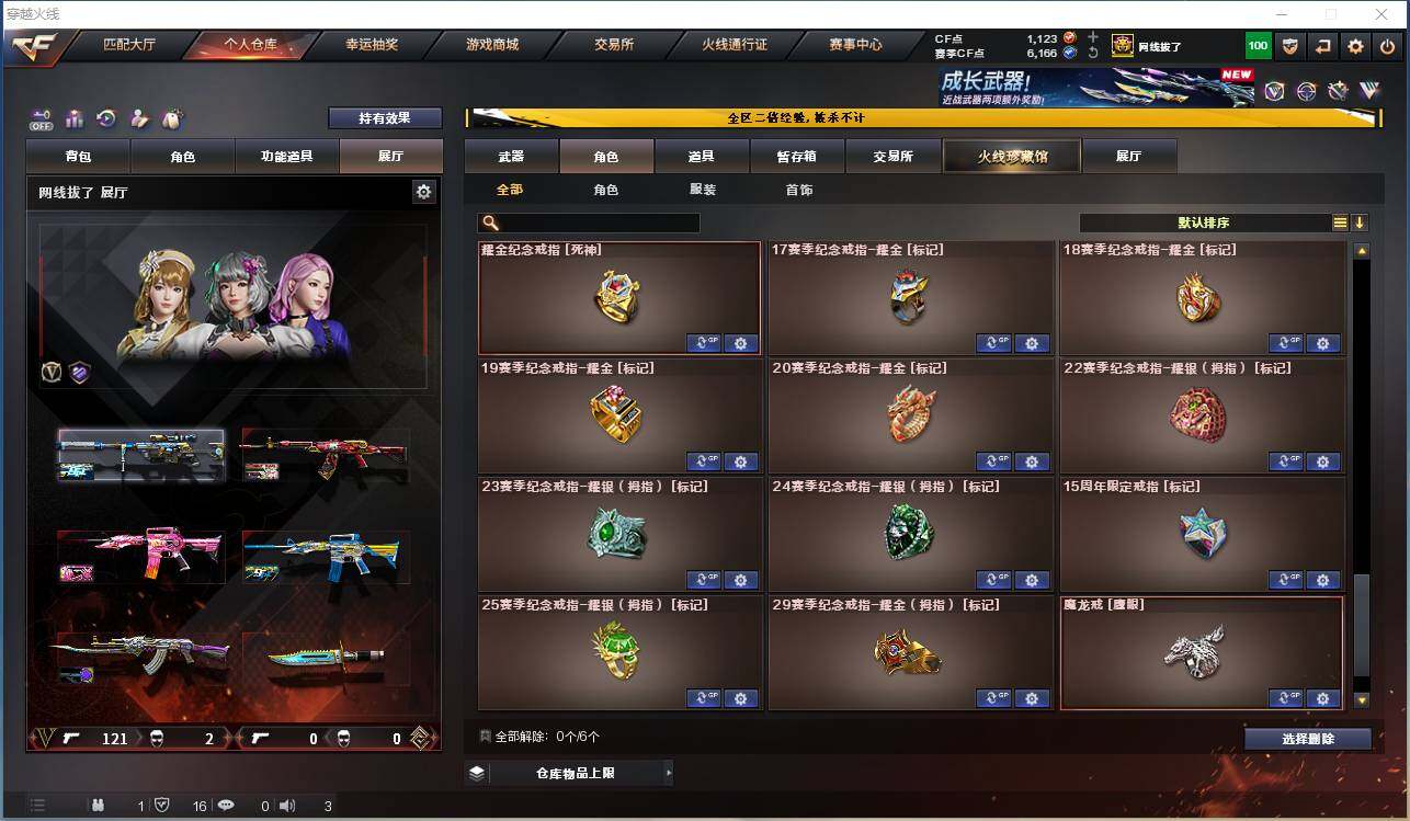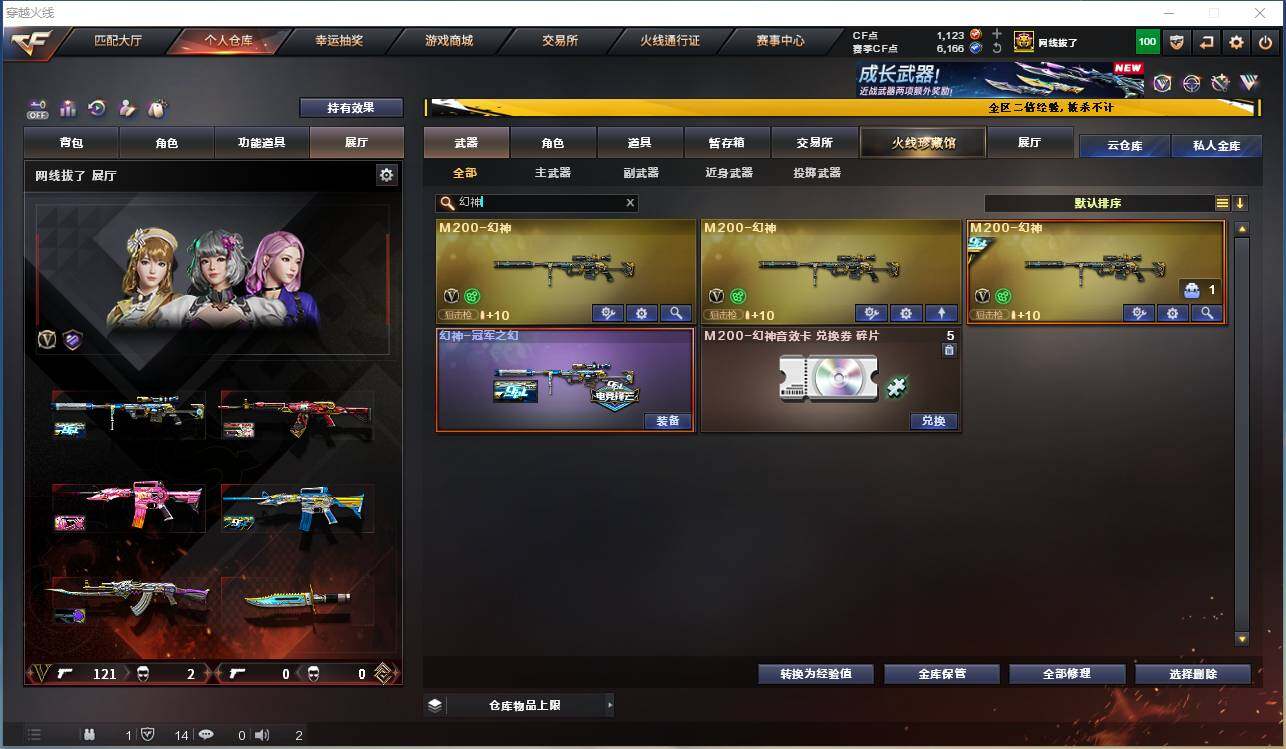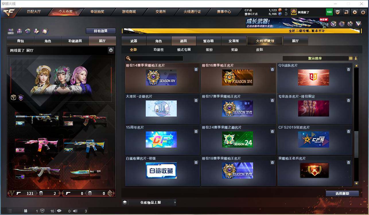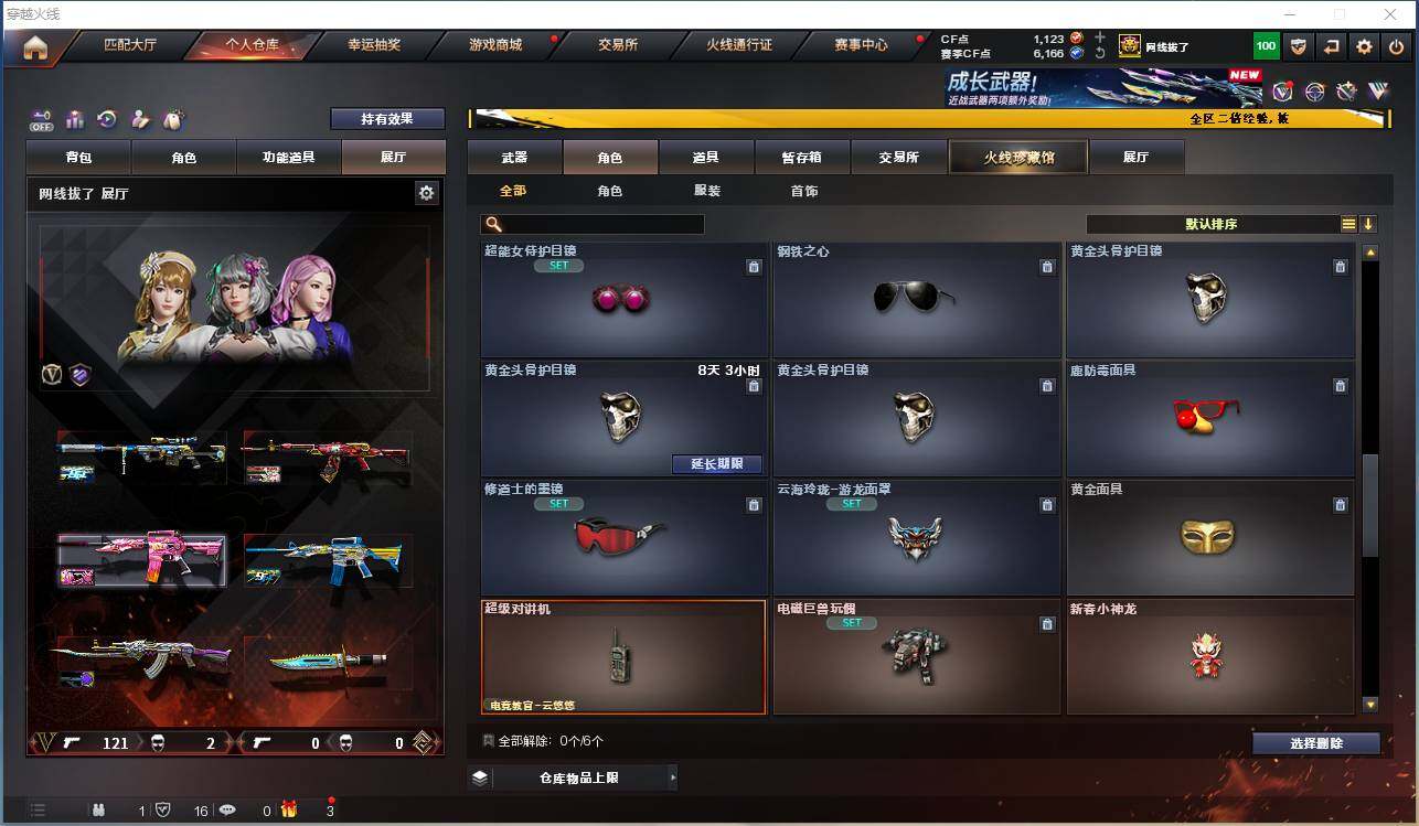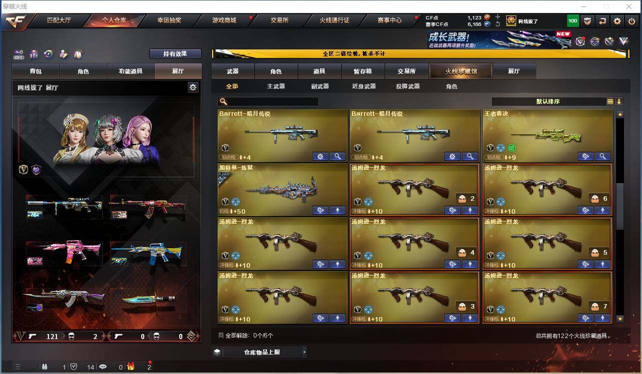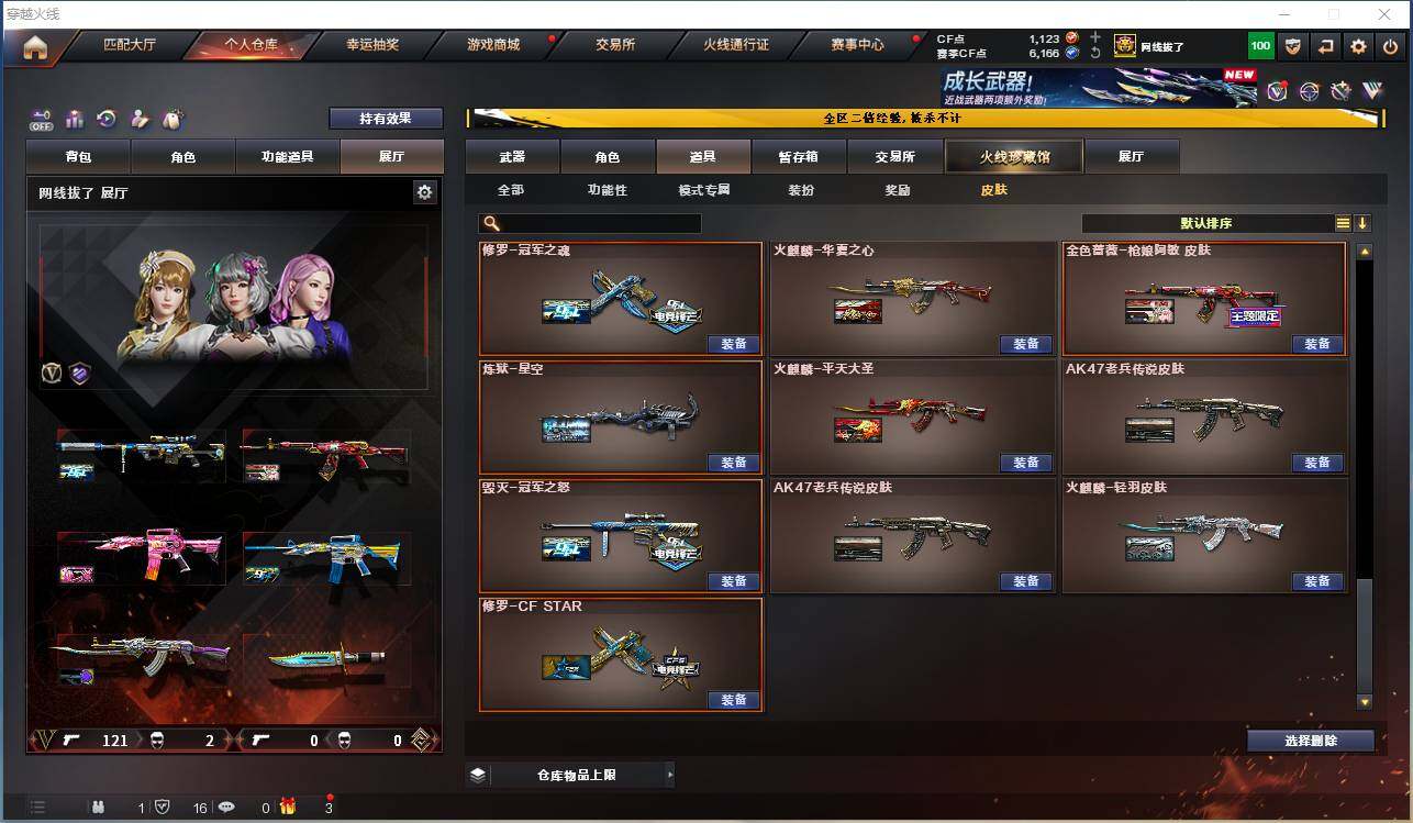 【人偶武器】:降世魔童,裁决-雪莉杨,天龙-曼陀罗,火麒麟-灵狐,AWM-灵狐-15周年嘉年华,M4A1-雷神-精英刀锋,COP-旗袍,Cat-刀锋,迷你超能女侍,闪光弹-小乔