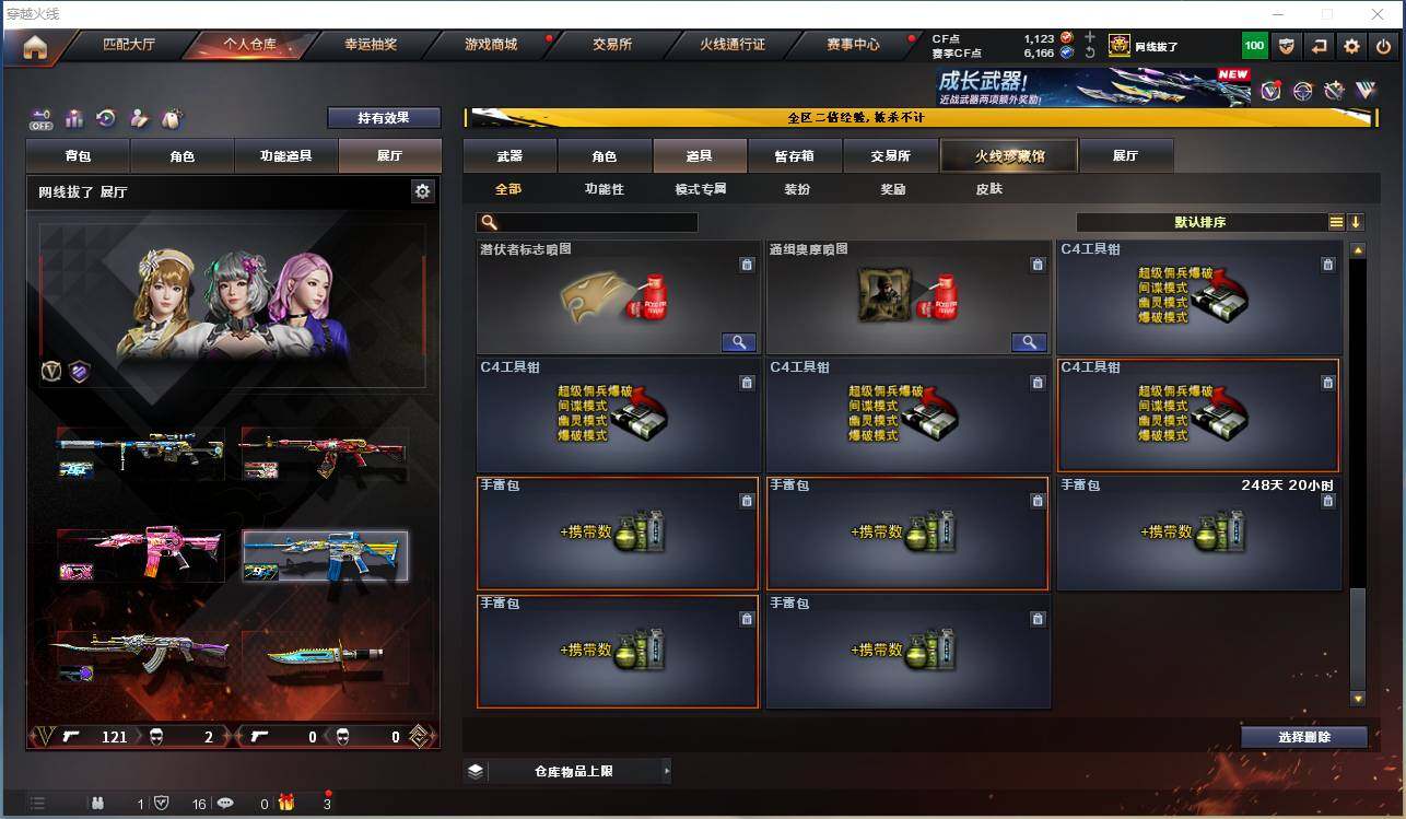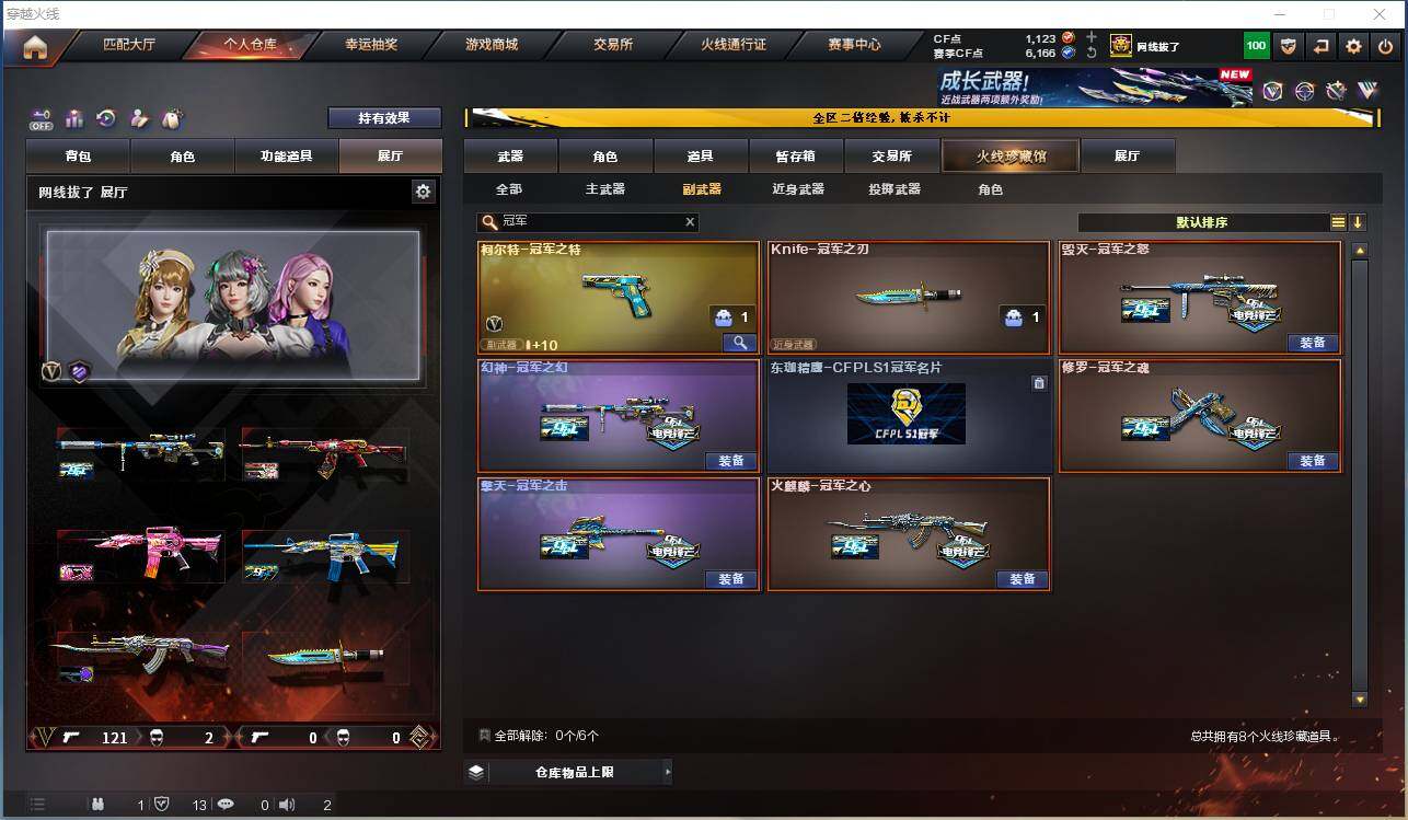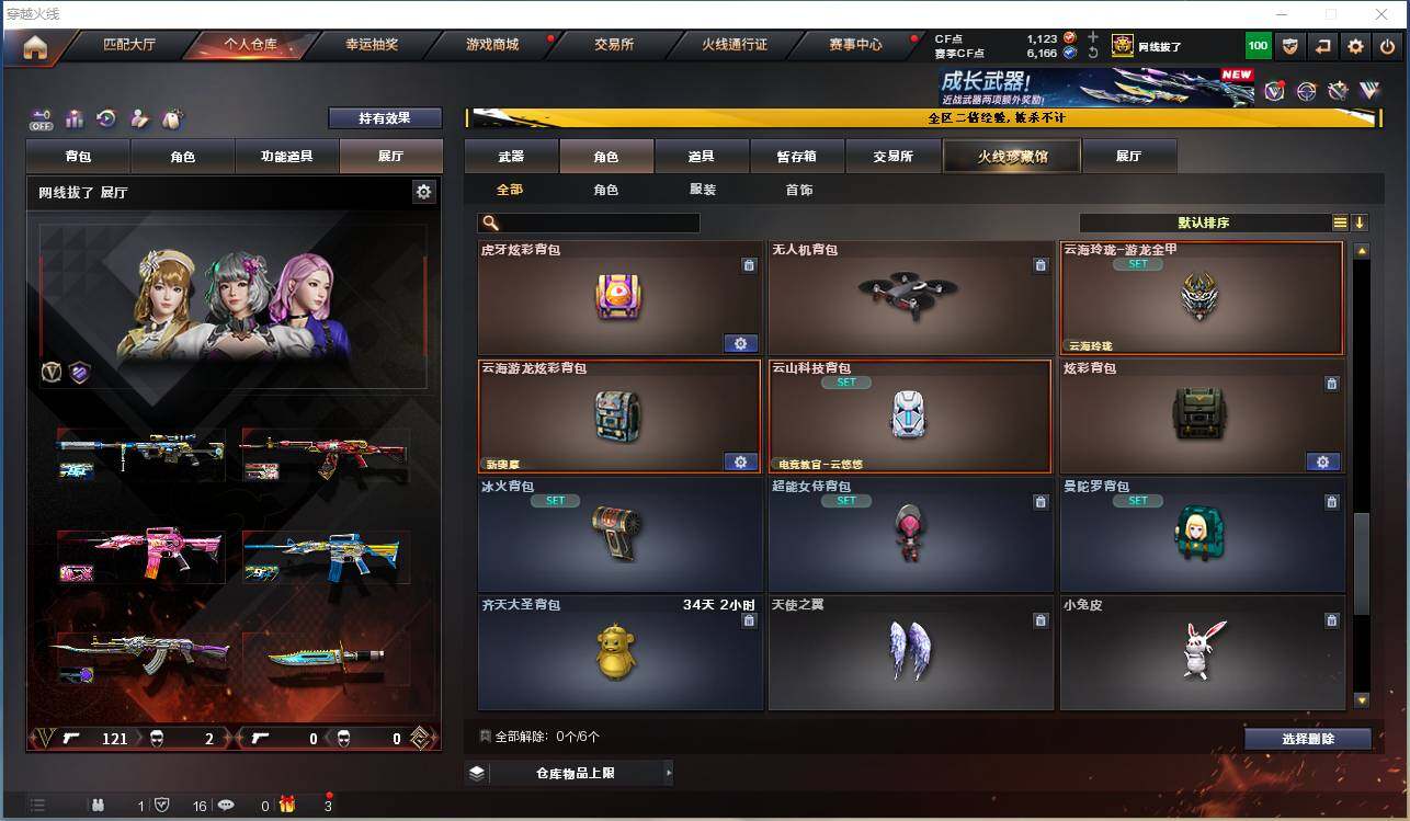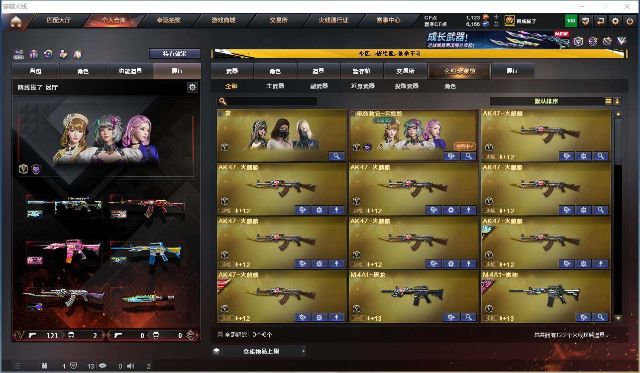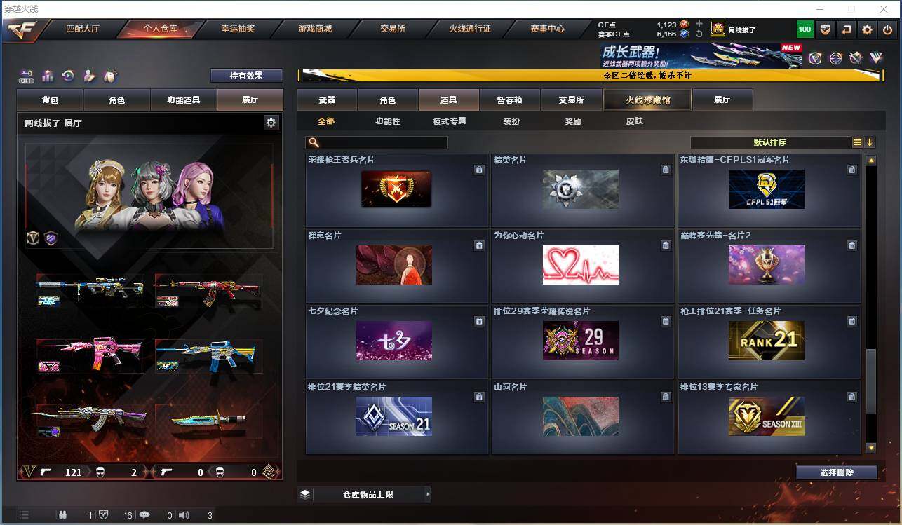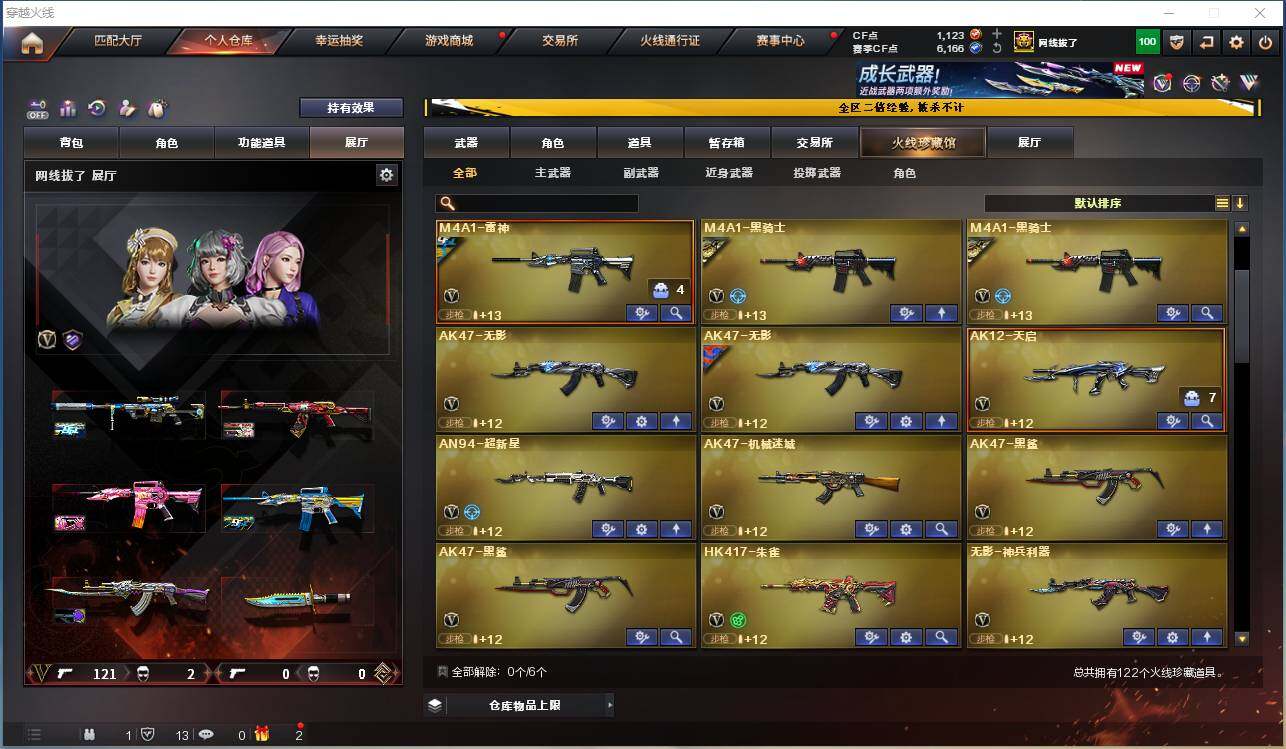 【人偶武器】:降世魔童,裁决-雪莉杨,天龙-曼陀罗,火麒麟-灵狐,AWM-灵狐-15周年嘉年华,M4A1-雷神-精英刀锋,COP-旗袍,Cat-刀锋,迷你超能女侍,闪光弹-小乔