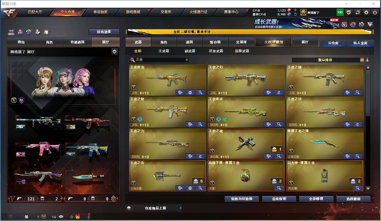 【王者炫金武器】:炫金天龙,炫金雷神,炫金武士*2,炫金超新星,王者之决,王者之幻,王者之力,王者青龙