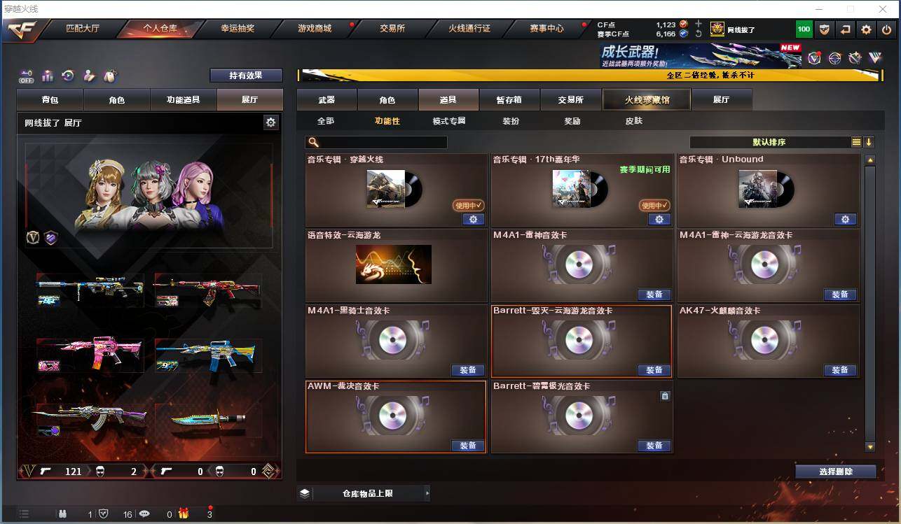 【音效卡】:AK47-火麒麟音效卡,M4A1-雷神音效卡,M4A1-雷神-云海游龙音效卡,M4A1-黑骑士音效卡,Barrett-毁灭-云海游龙音效卡,AWM-裁决音效卡
