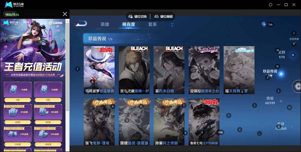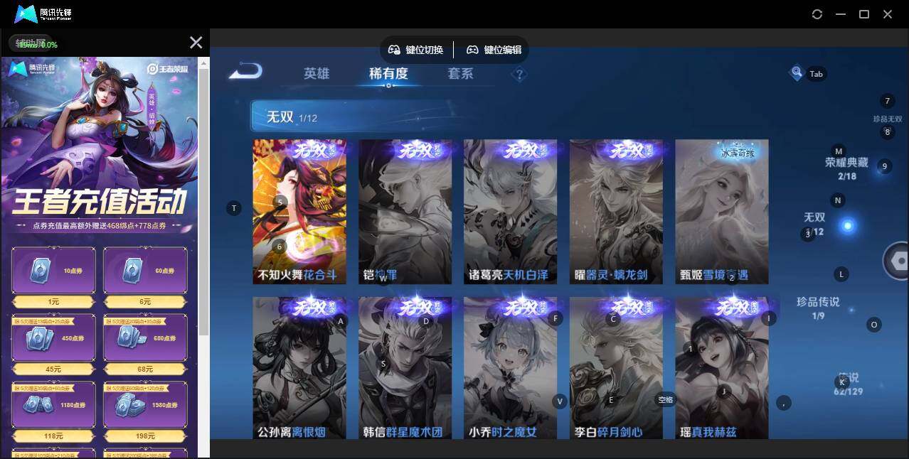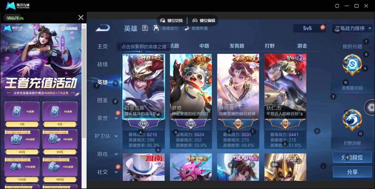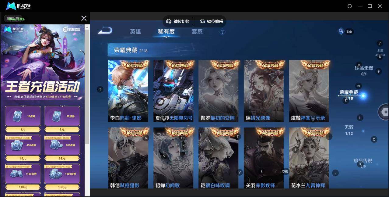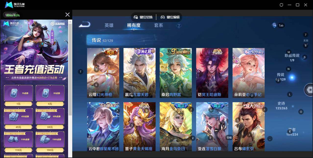 - [11852819]V7 4传说 123英雄 126皮肤 可修改实名 优质装备:云鹰飞将(小将军),地狱火,涂山容容 传说皮:幻光神枪 珍宝阁皮:妄想食味 限定皮:愿照·九州拓(澜年限),傲雪梅枪,五谷丰年,时之祈愿-云中君,百木心枪 史诗皮:龙之律动,织梦人,千年之狐,永昼,魅语,末日机甲-吕布,女仆咖啡,水果甜心,德古拉伯爵,幽灵船长,鬼剑武藏,地狱岩魂,水晶猎龙者,曙光守护者,唤灵魅影,金属风暴,鹰眼统帅,魅力维加斯,玫瑰异探
