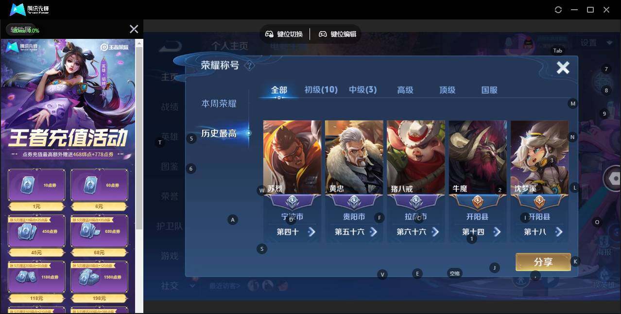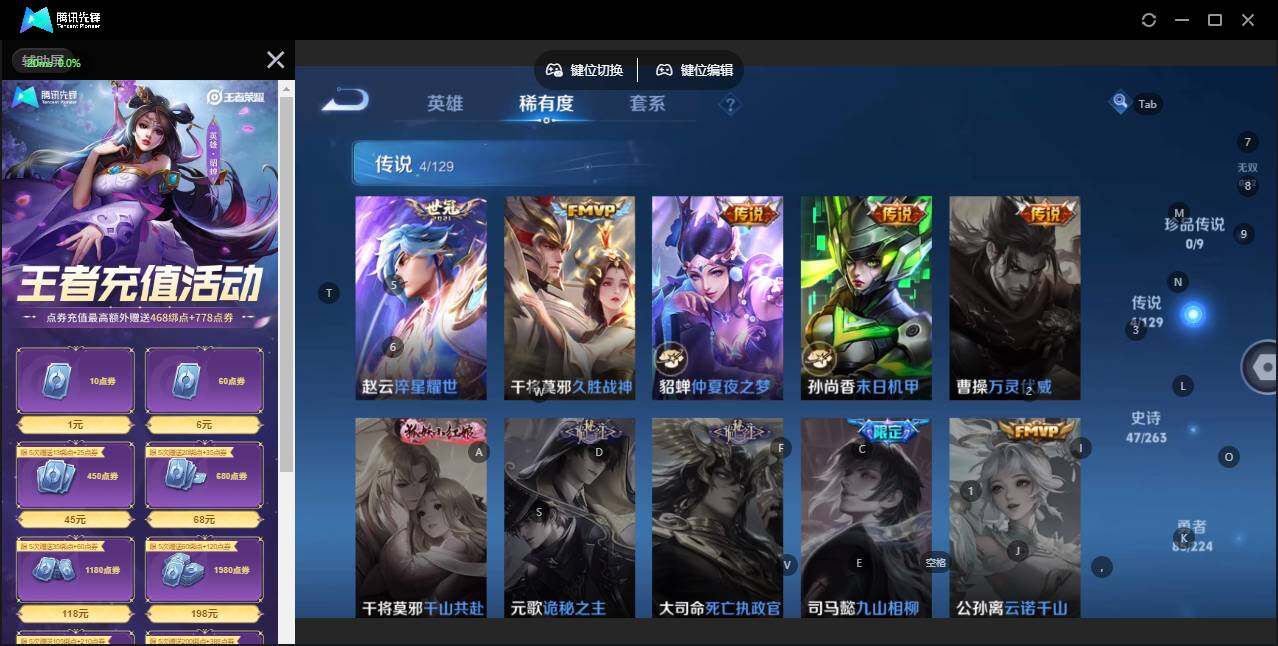 - PX_2111810-Q/最强王者/96皮肤/98英雄/0典藏/0珍品无双/0无双/1珍品传说/6传说/27史诗/4稀有英雄 【1 珍品传说】怪盗基德 马可波罗, 【6 传说皮肤】逐花归海 澜,炽阳神光 镜,霜月吟 露娜,黄金狮子座 达摩,幻光神枪 云缨,鸣野蒿 桑启, 【27 史诗皮肤】紫霞仙子 露娜,天秀·启明 杨戬,鬼剑武藏 宫本武藏,星夜王子 白起,摇滚巨星 嬴政,魅力维加斯 妲己,黄金分