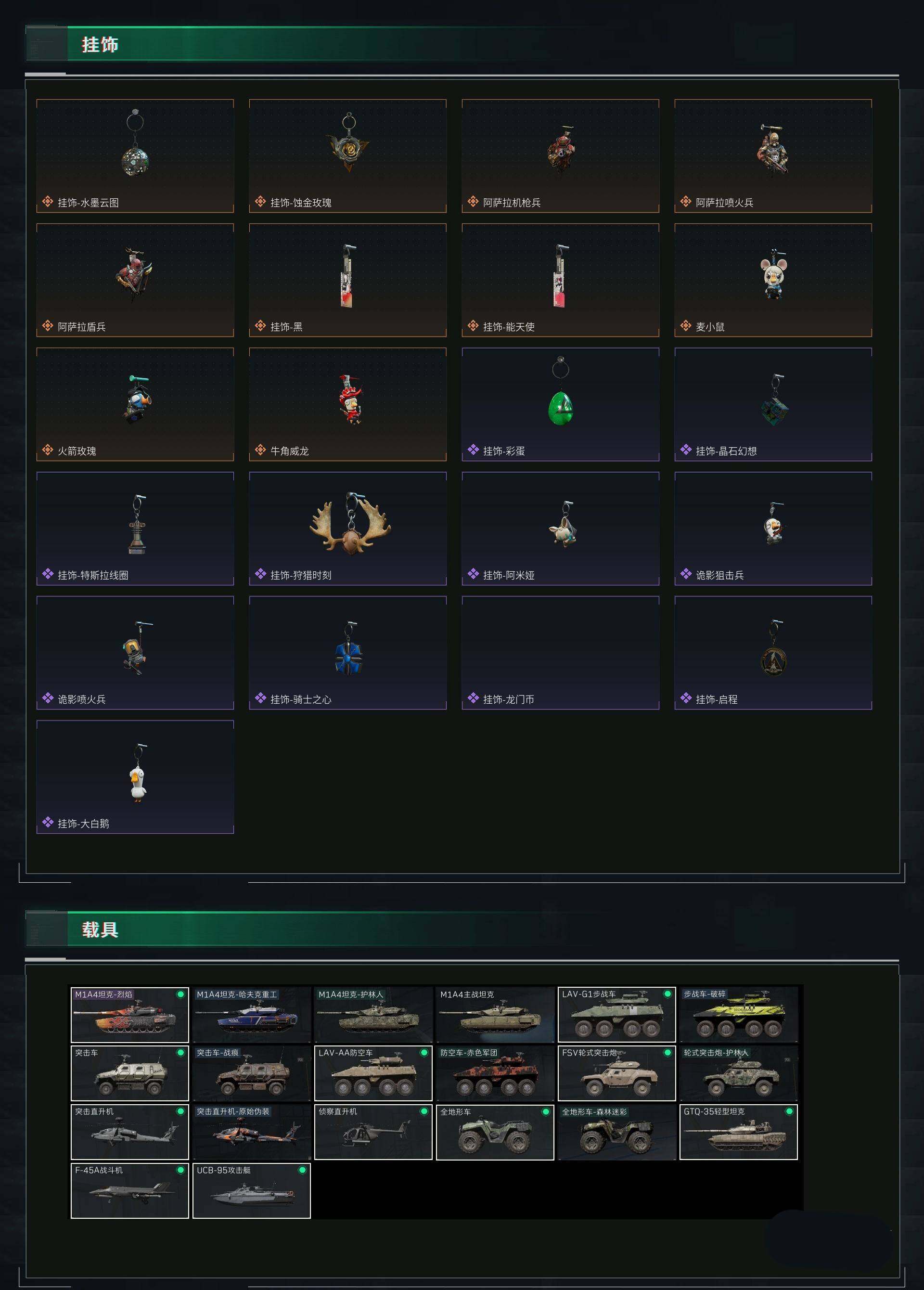 【典藏外观】:AWM狙击步枪-私人定制,SCAR-H战斗步枪-纯白涂装,AS Val突击步枪-蝴蝶,M870霰弹枪-马赛克涂装,SV-98狙击步枪-马赛克涂装